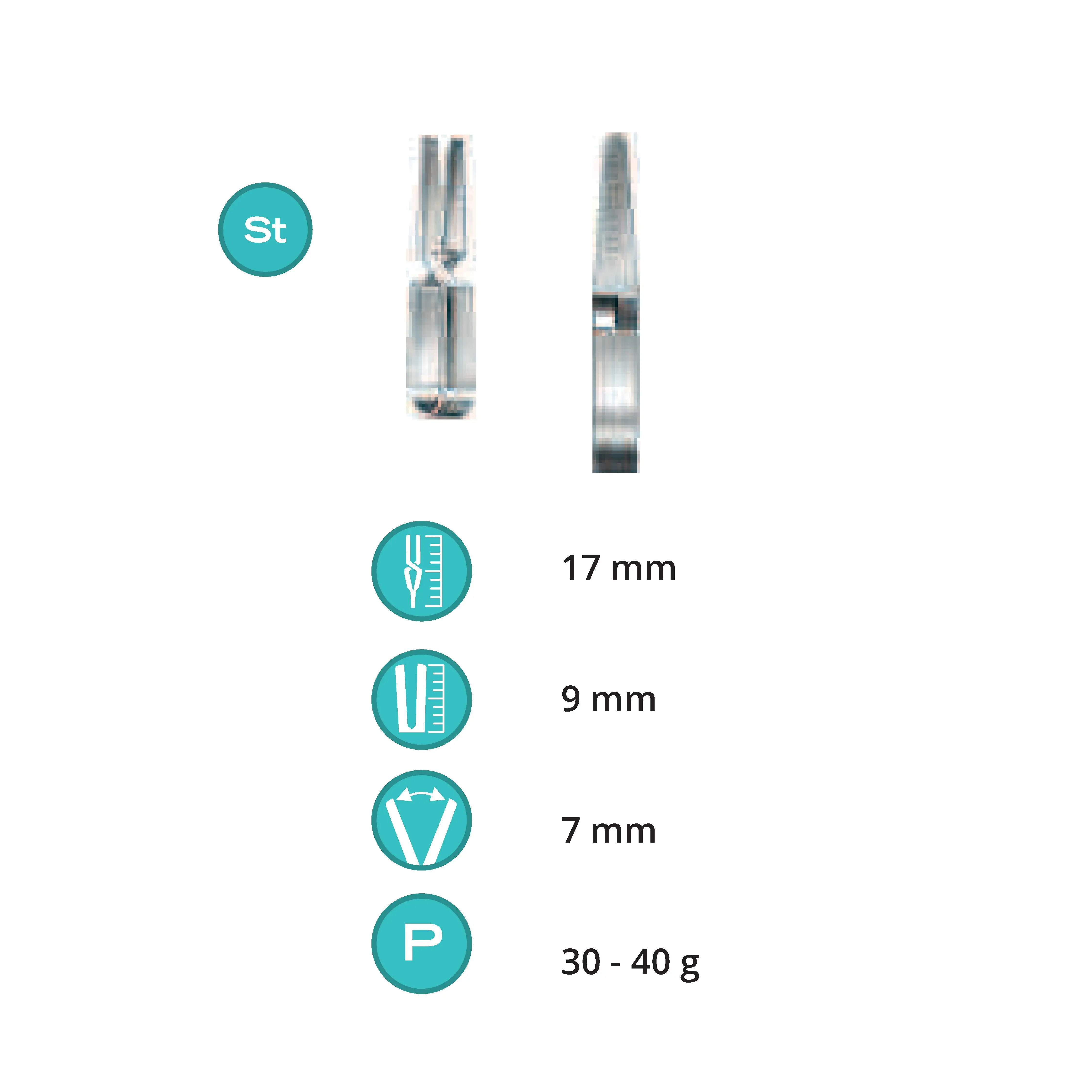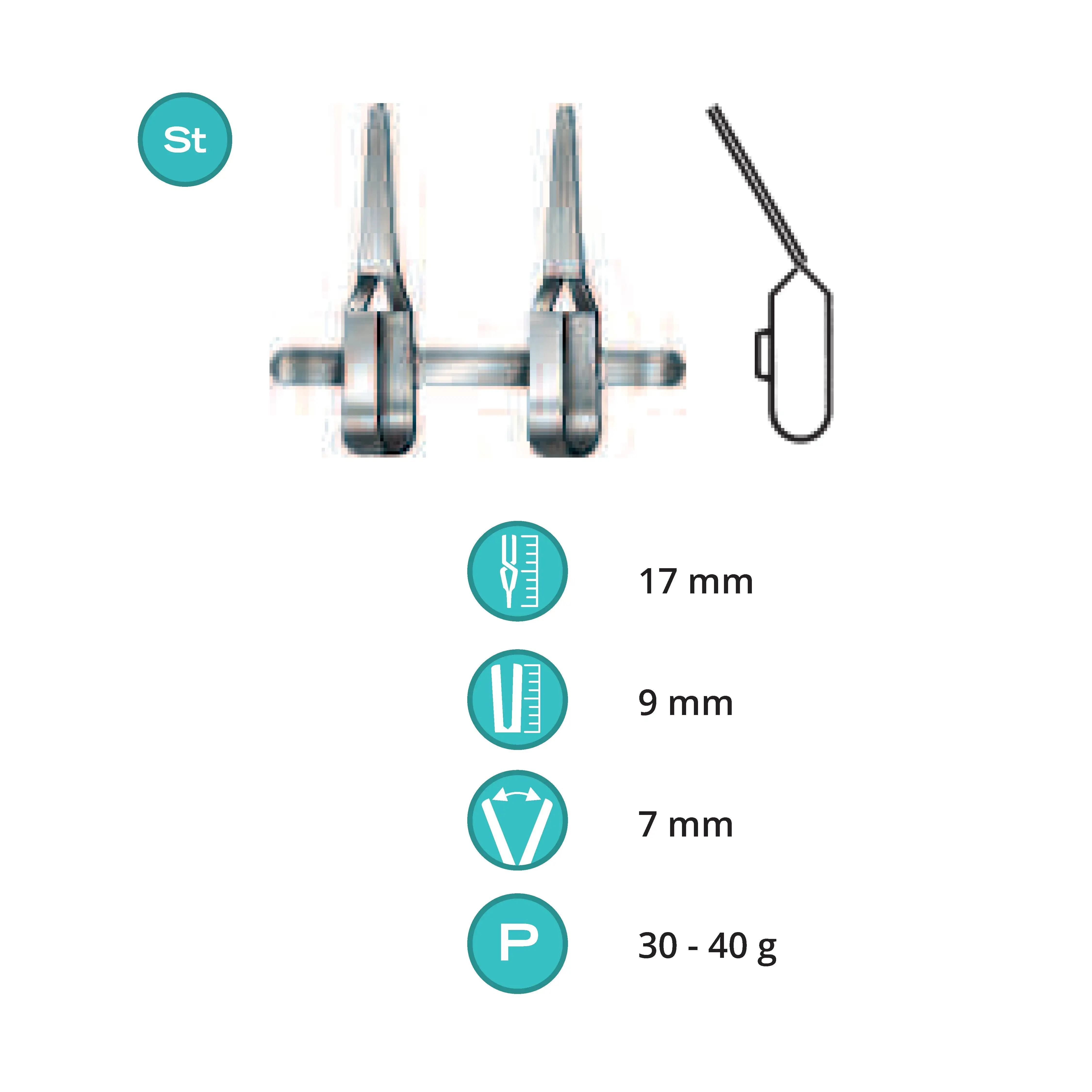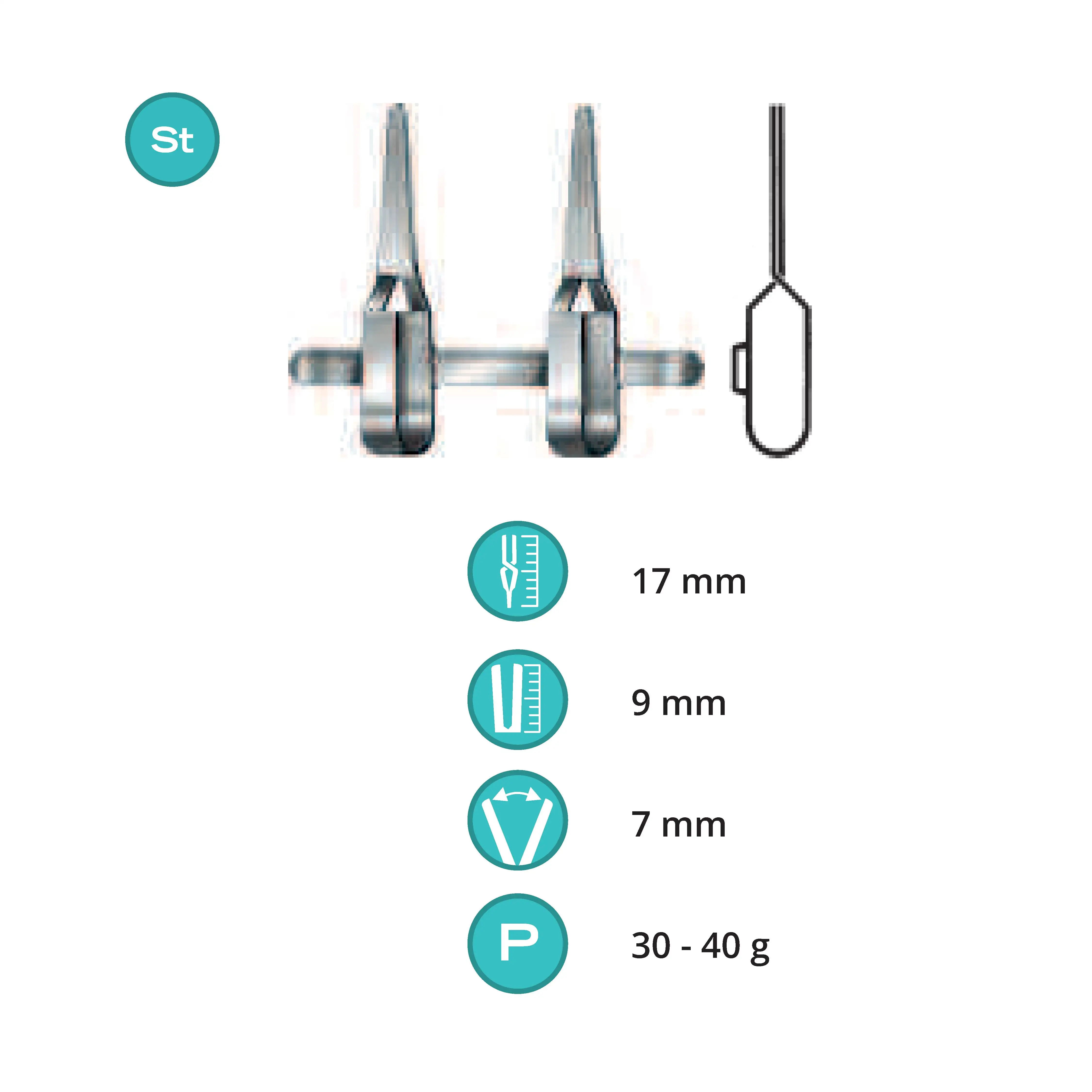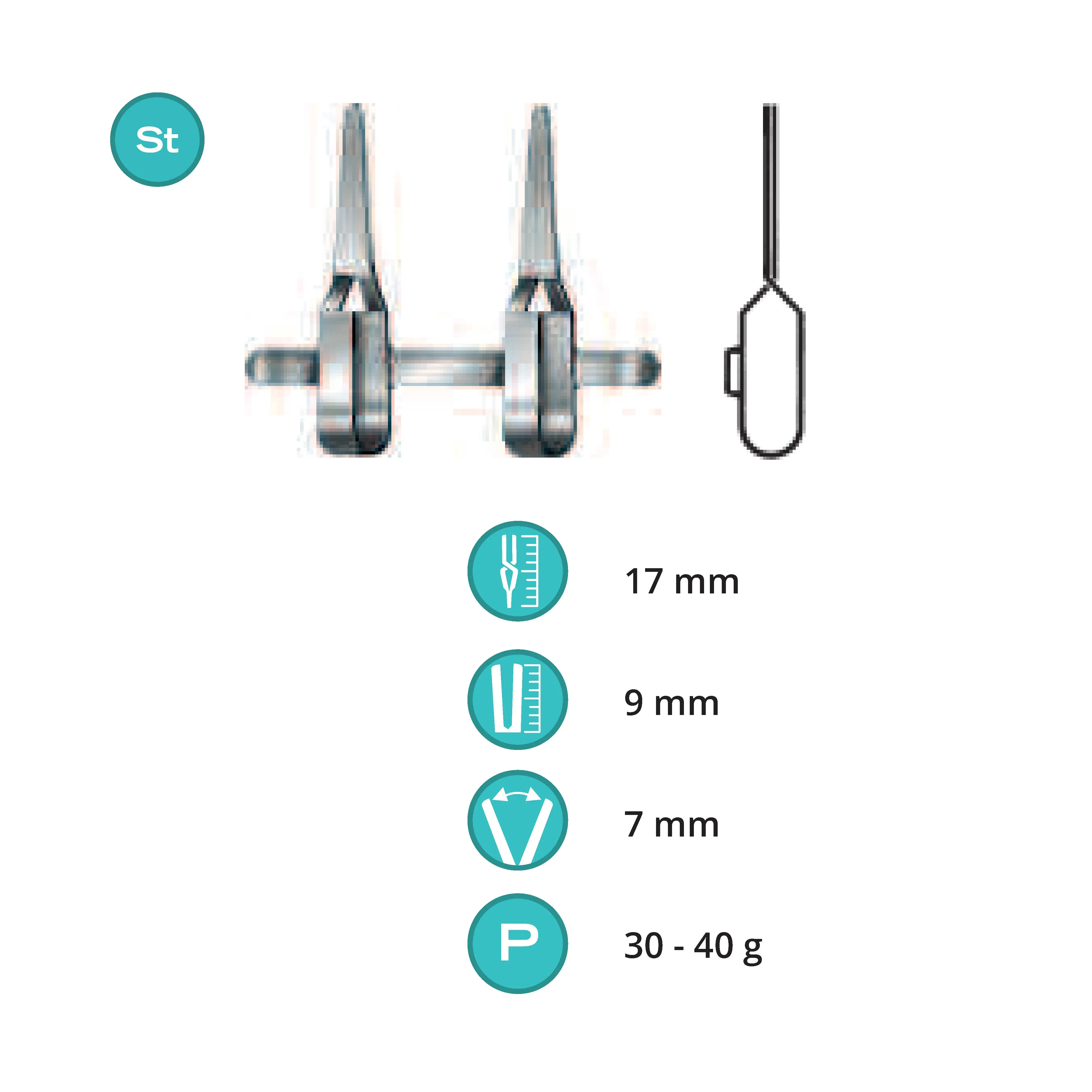 Length 17 mm, working area 9 mm, opening range 7 mm, Pressure 30-40 g