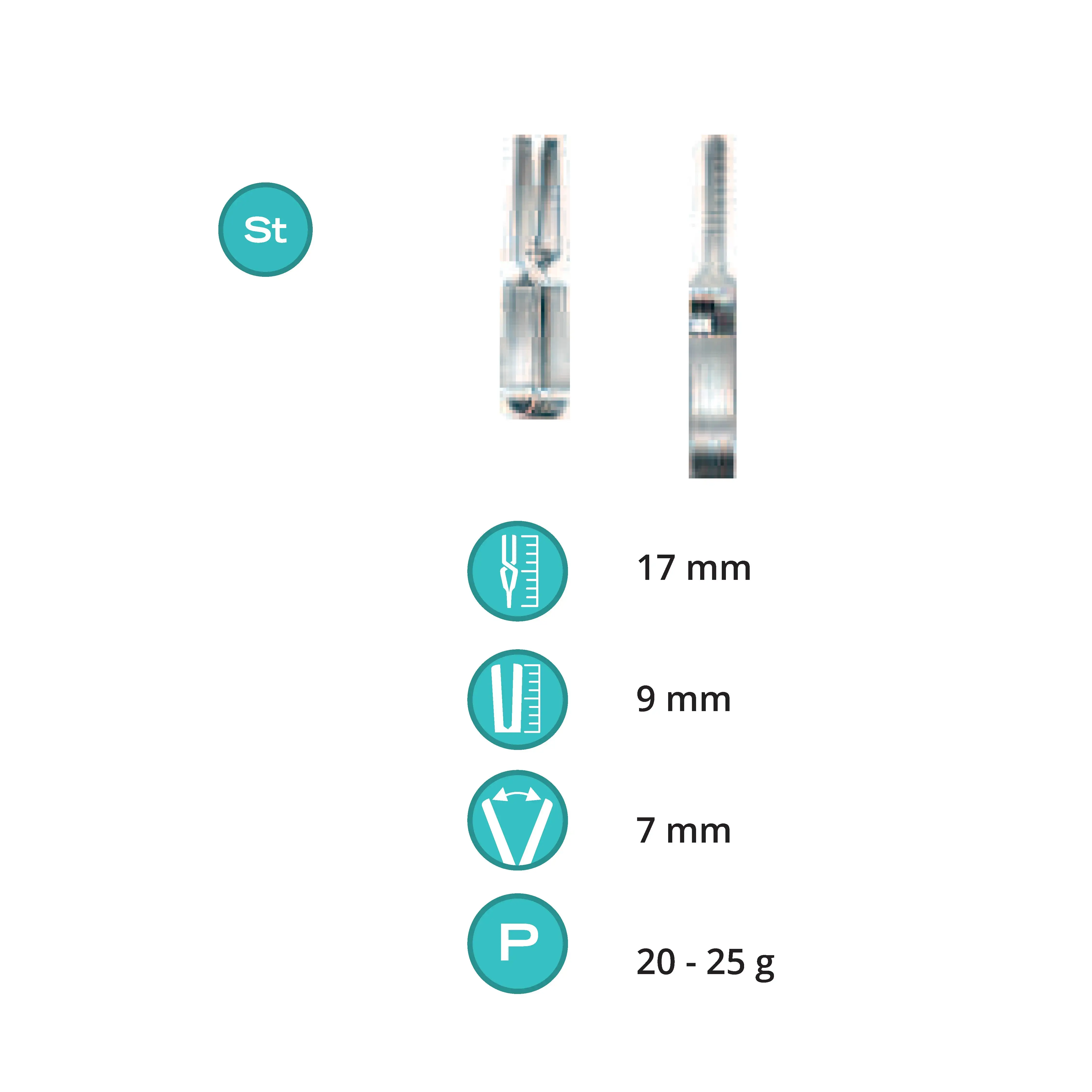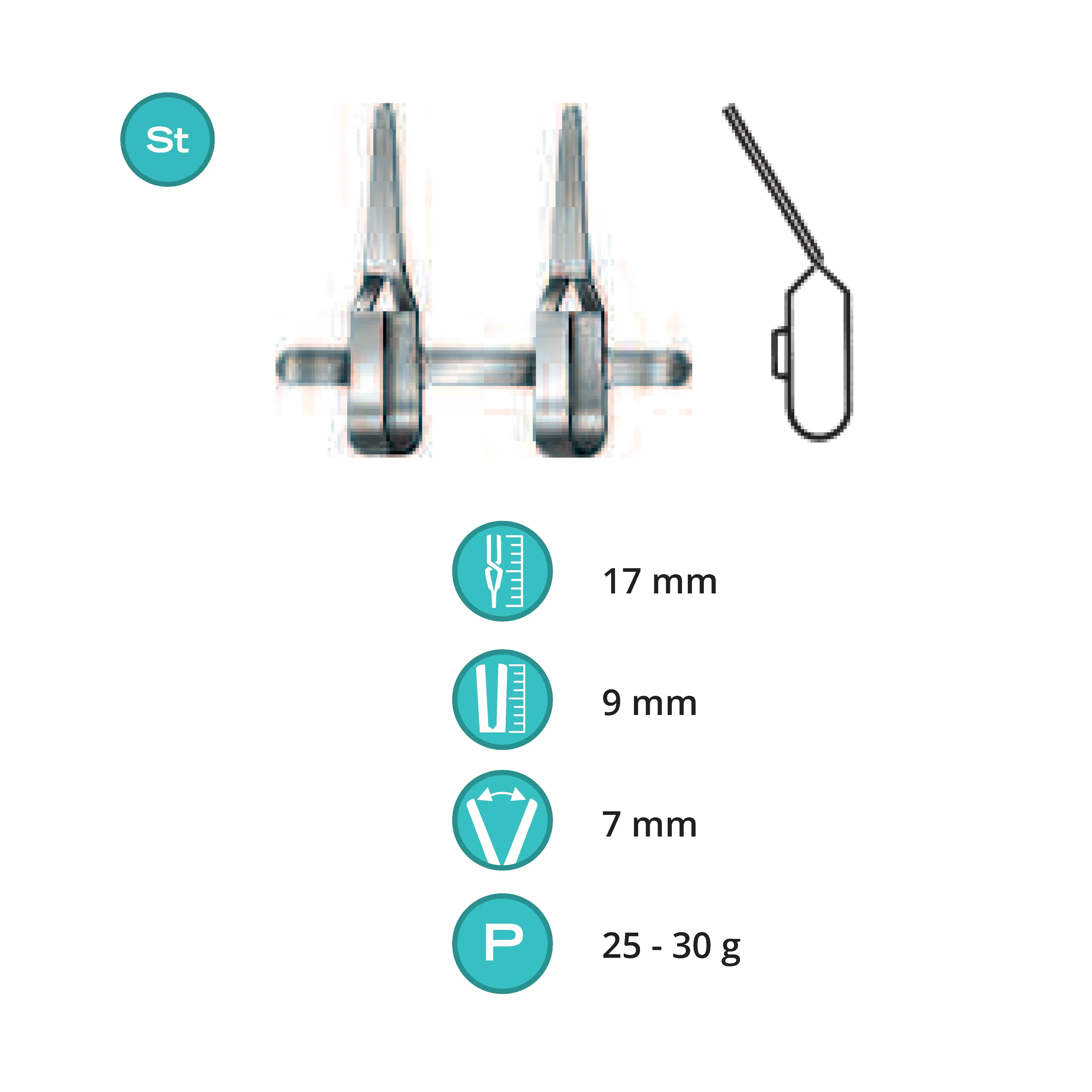 Length 17 mm, working area 9 mm, opening range 7 mm, Pressure 25-30 g