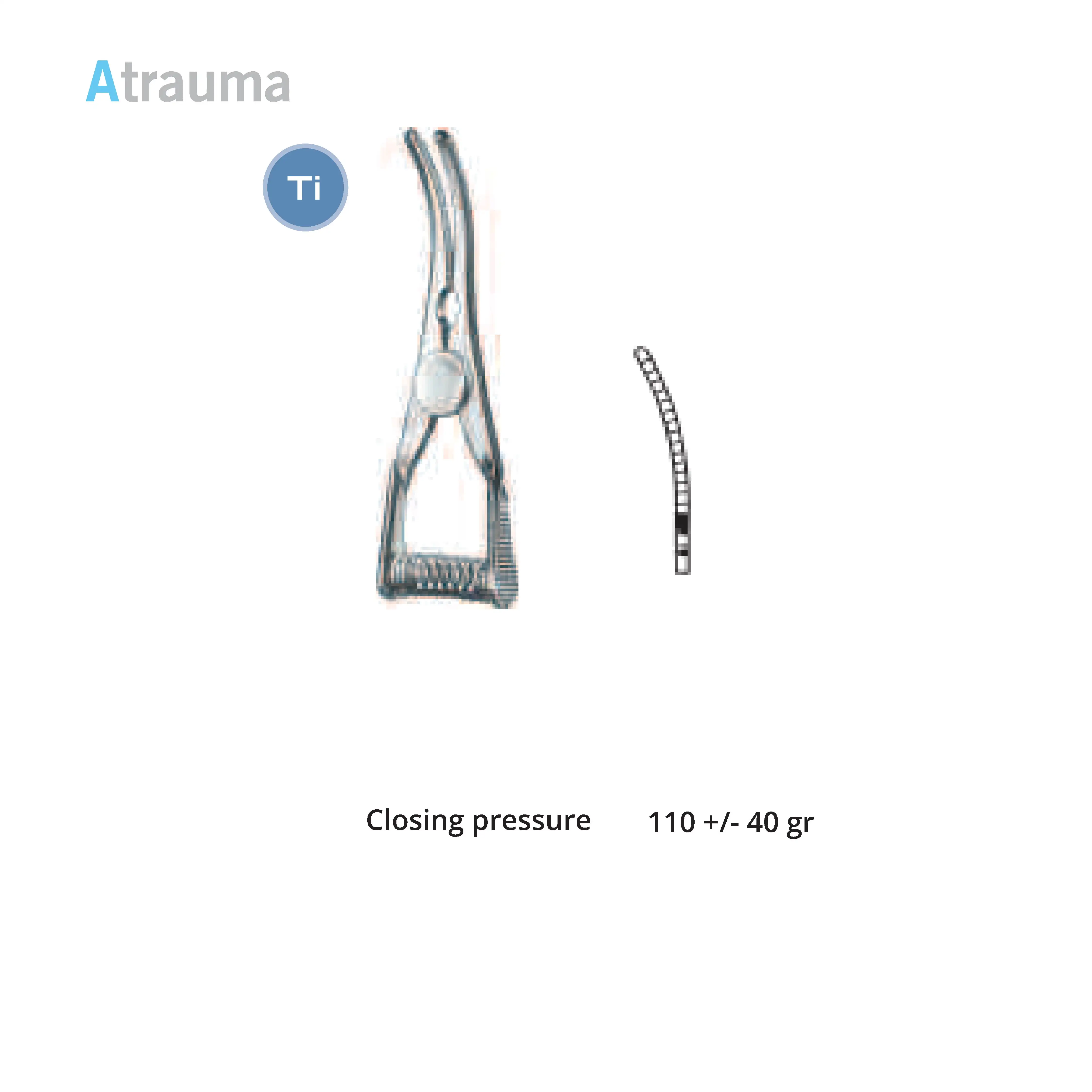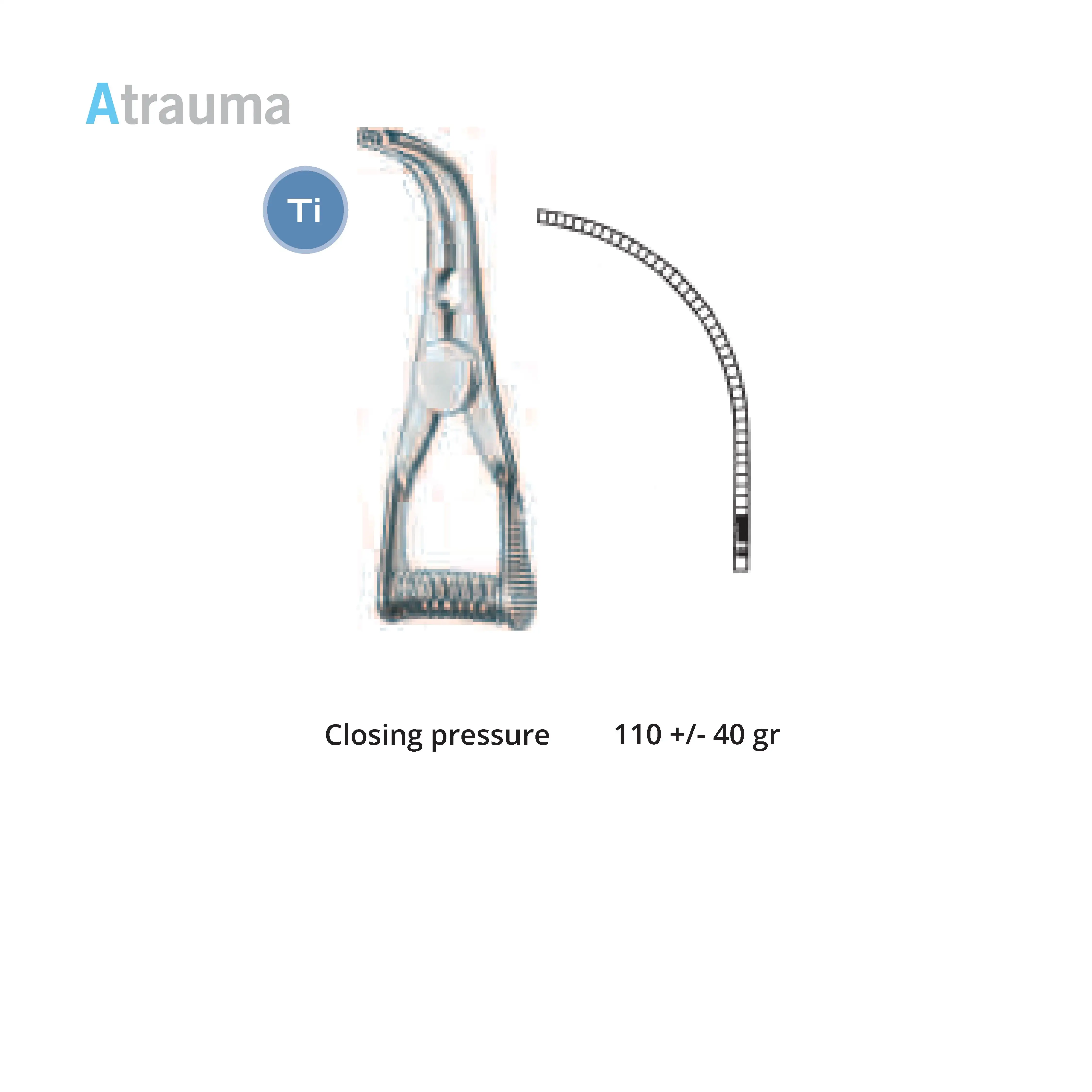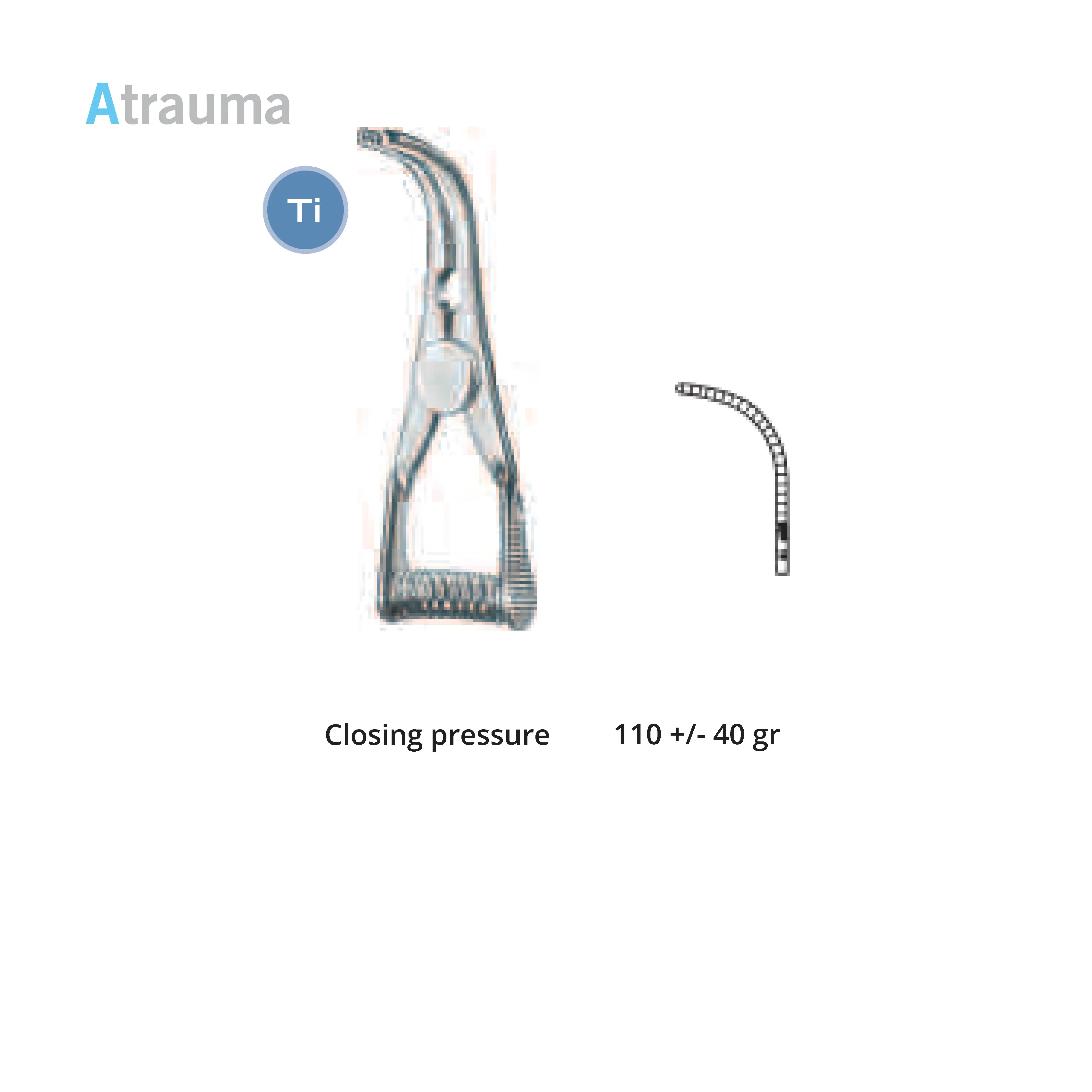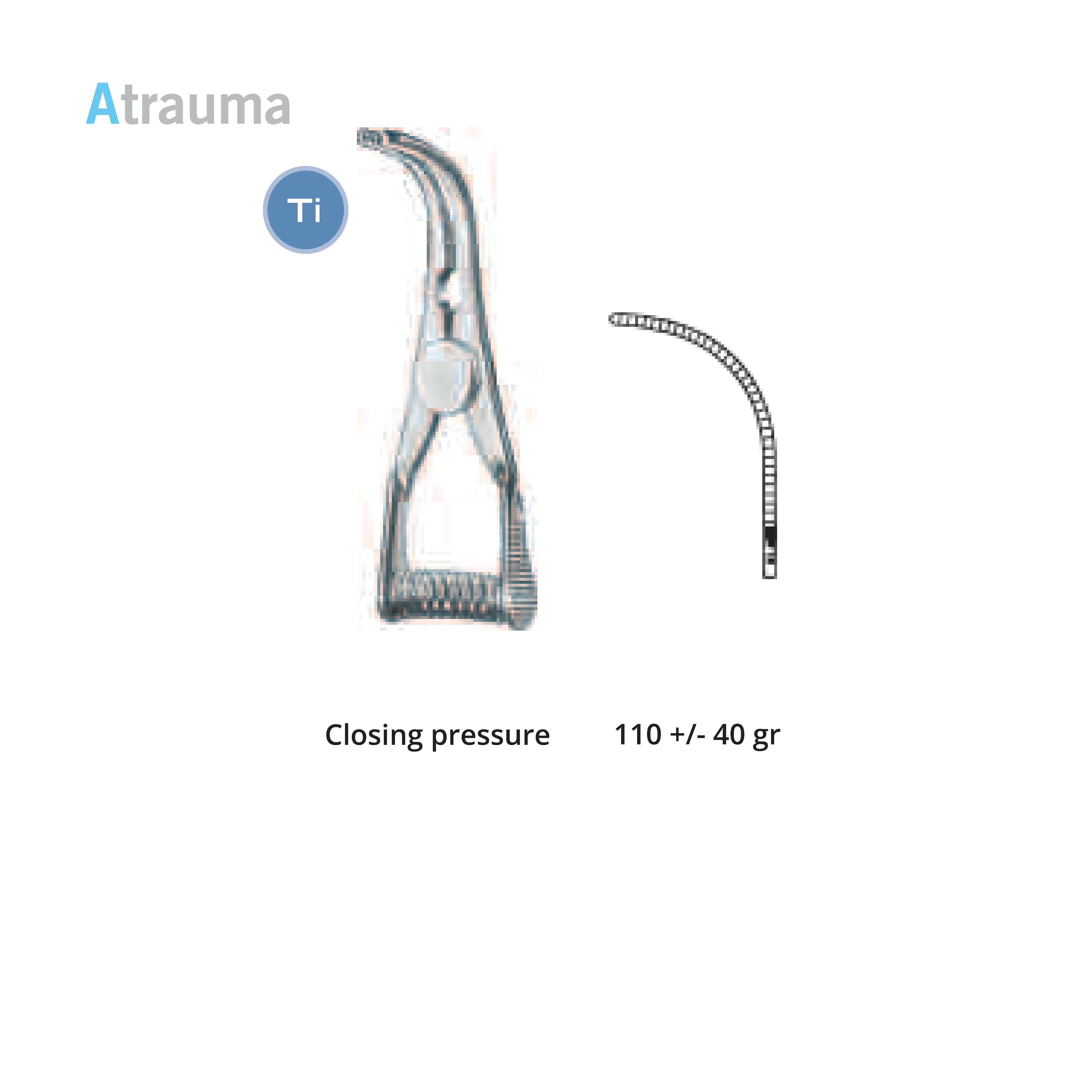 Length 2.0 cm, working area 10 mm, opening range 7 mm, Pressure 125 g, Tip width 2 mm