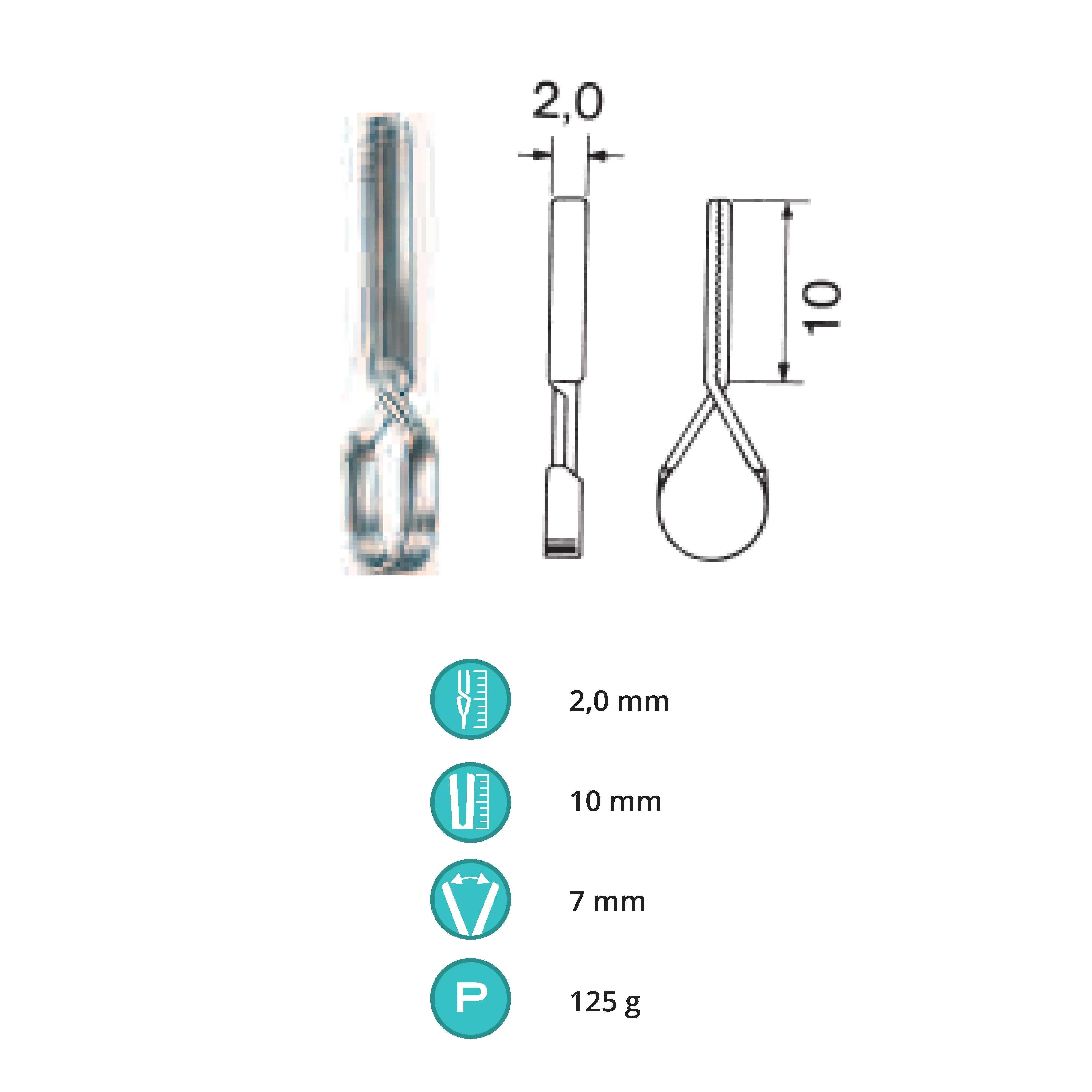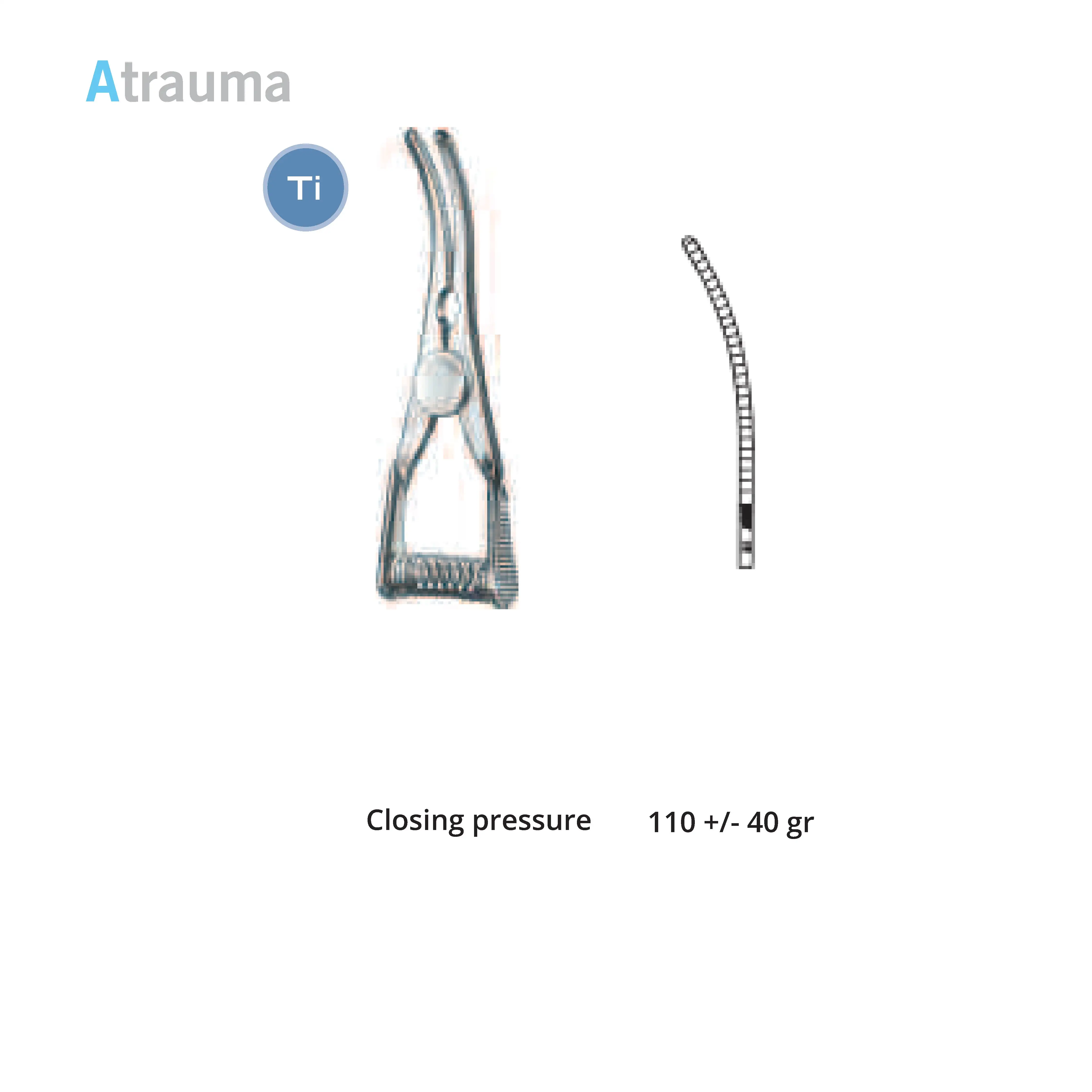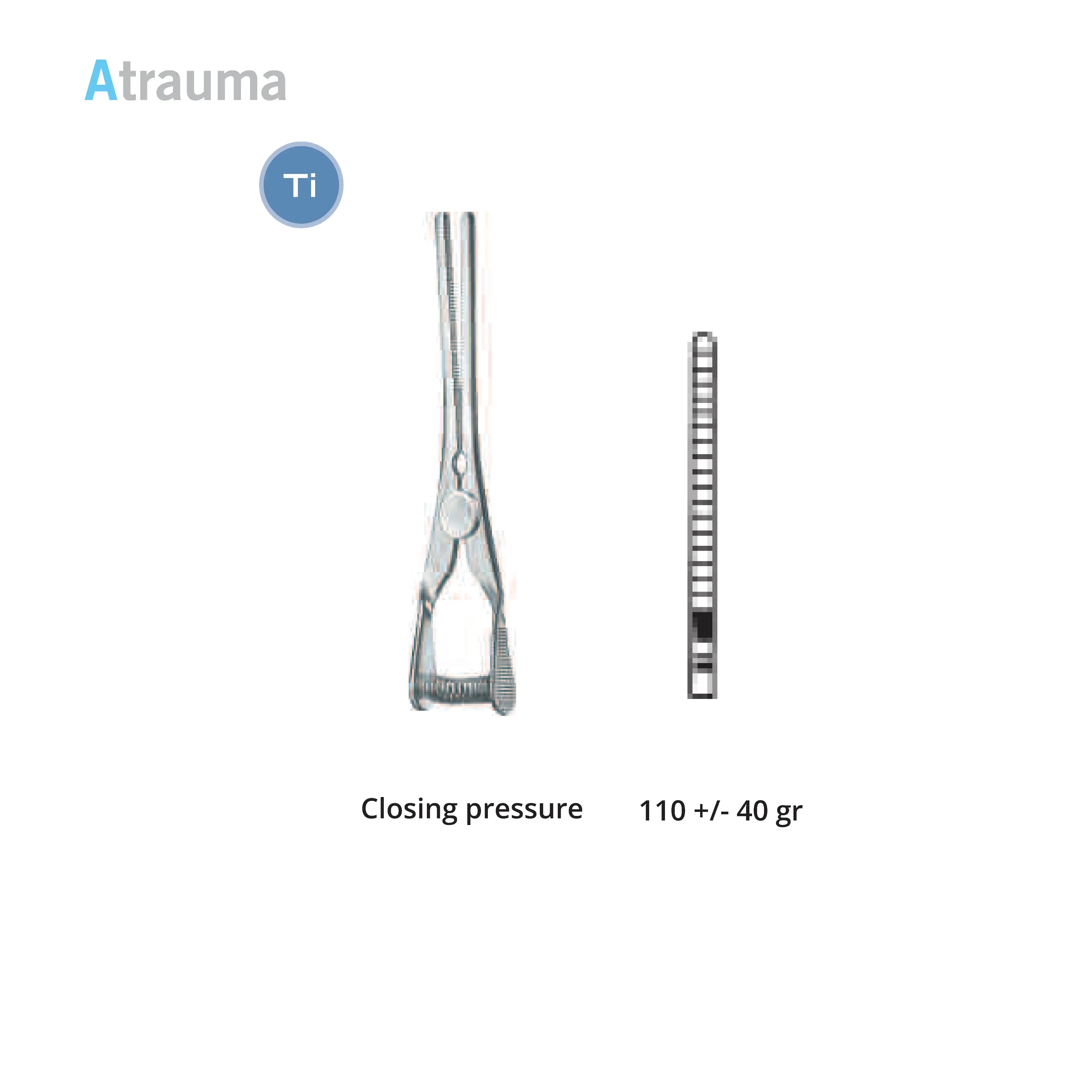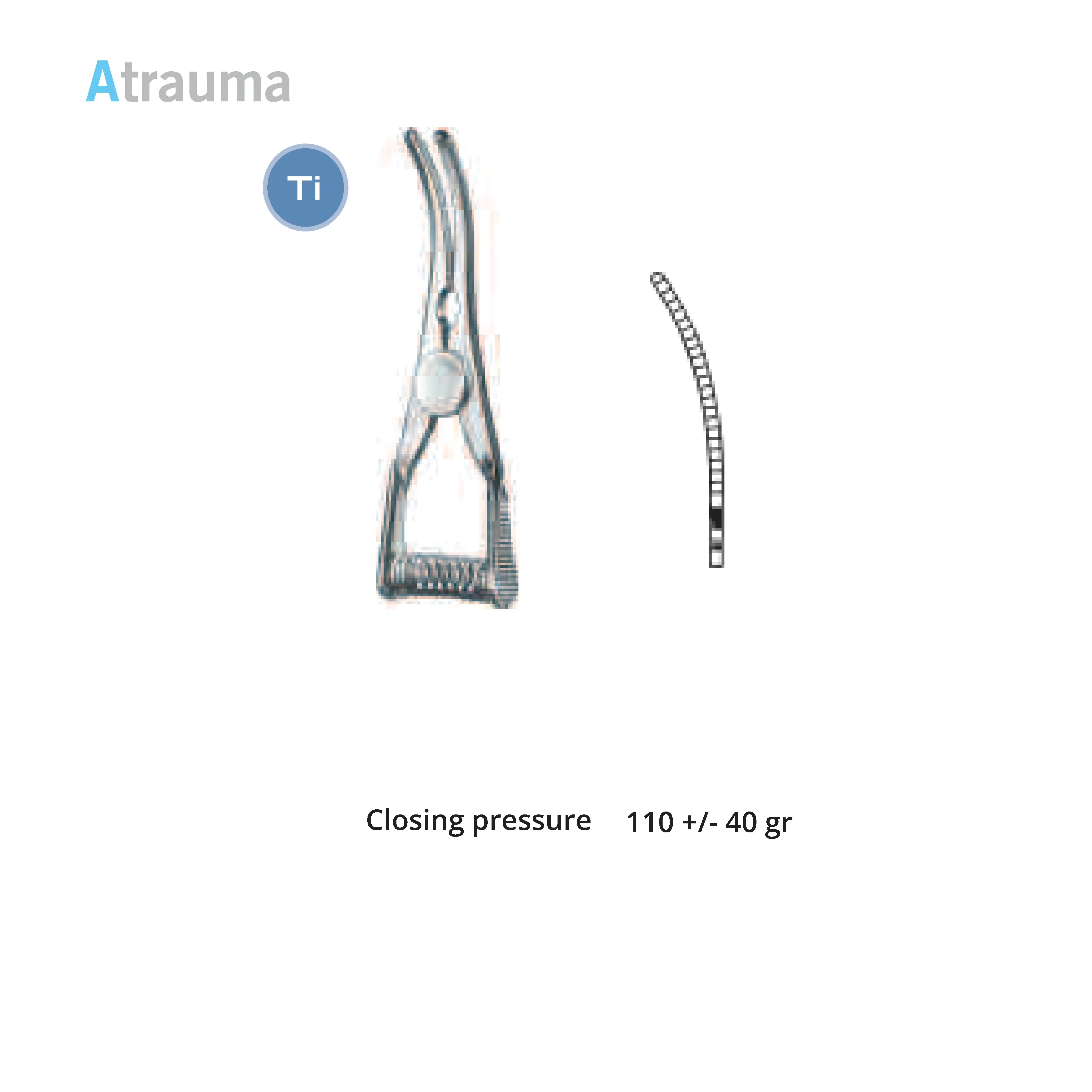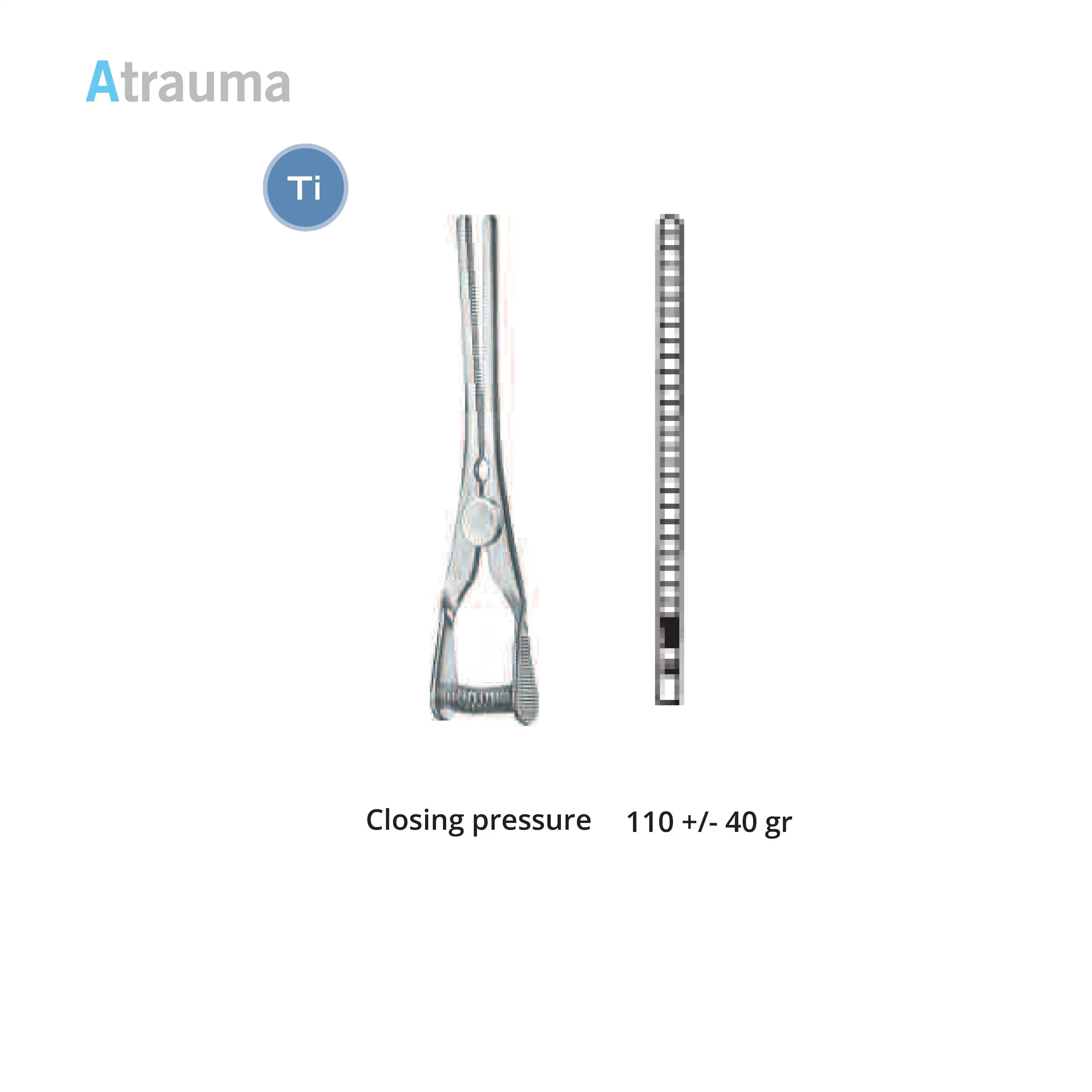Length 2.0 cm, working area 10 mm, opening range 7 mm, Pressure 125 g, Tip width 2 mm