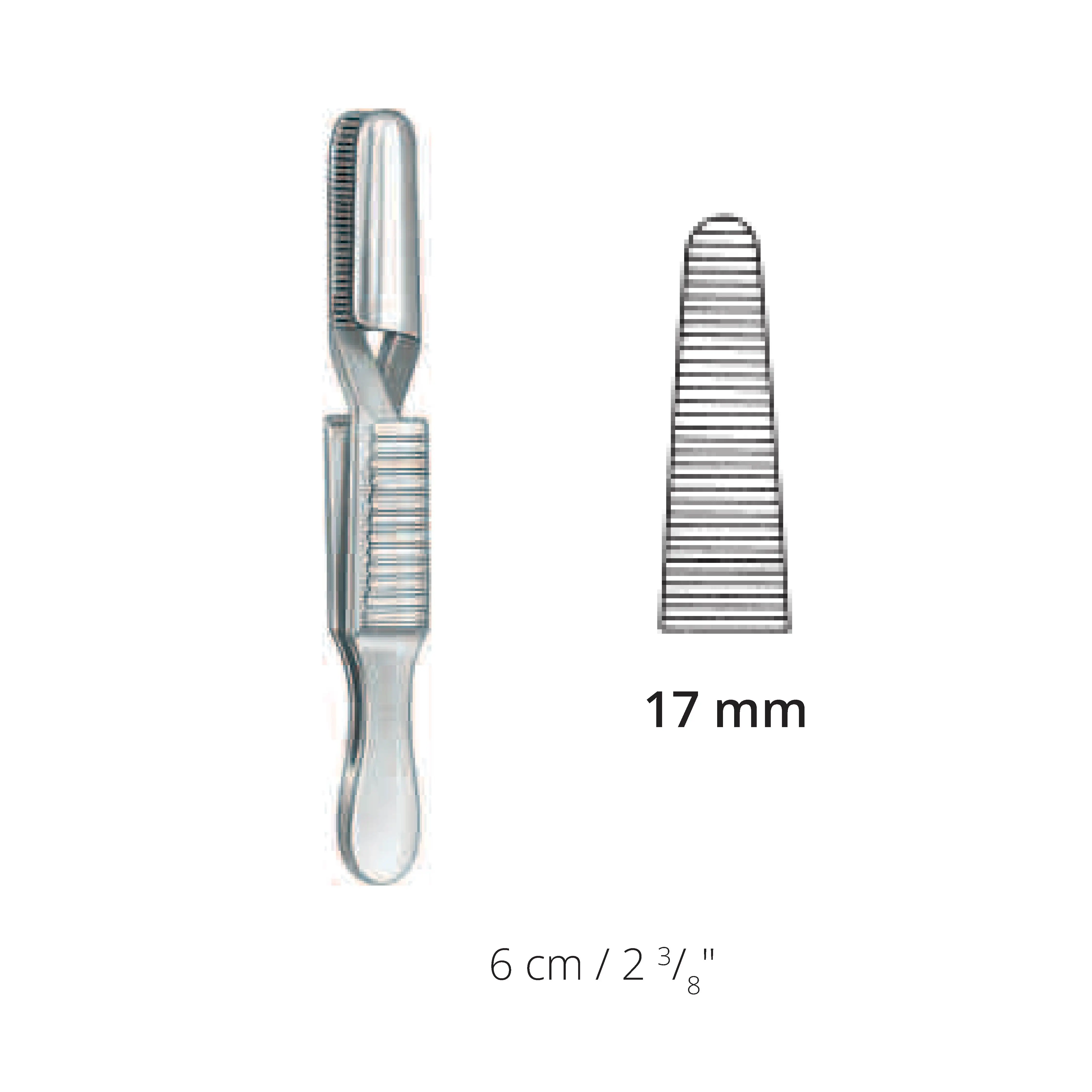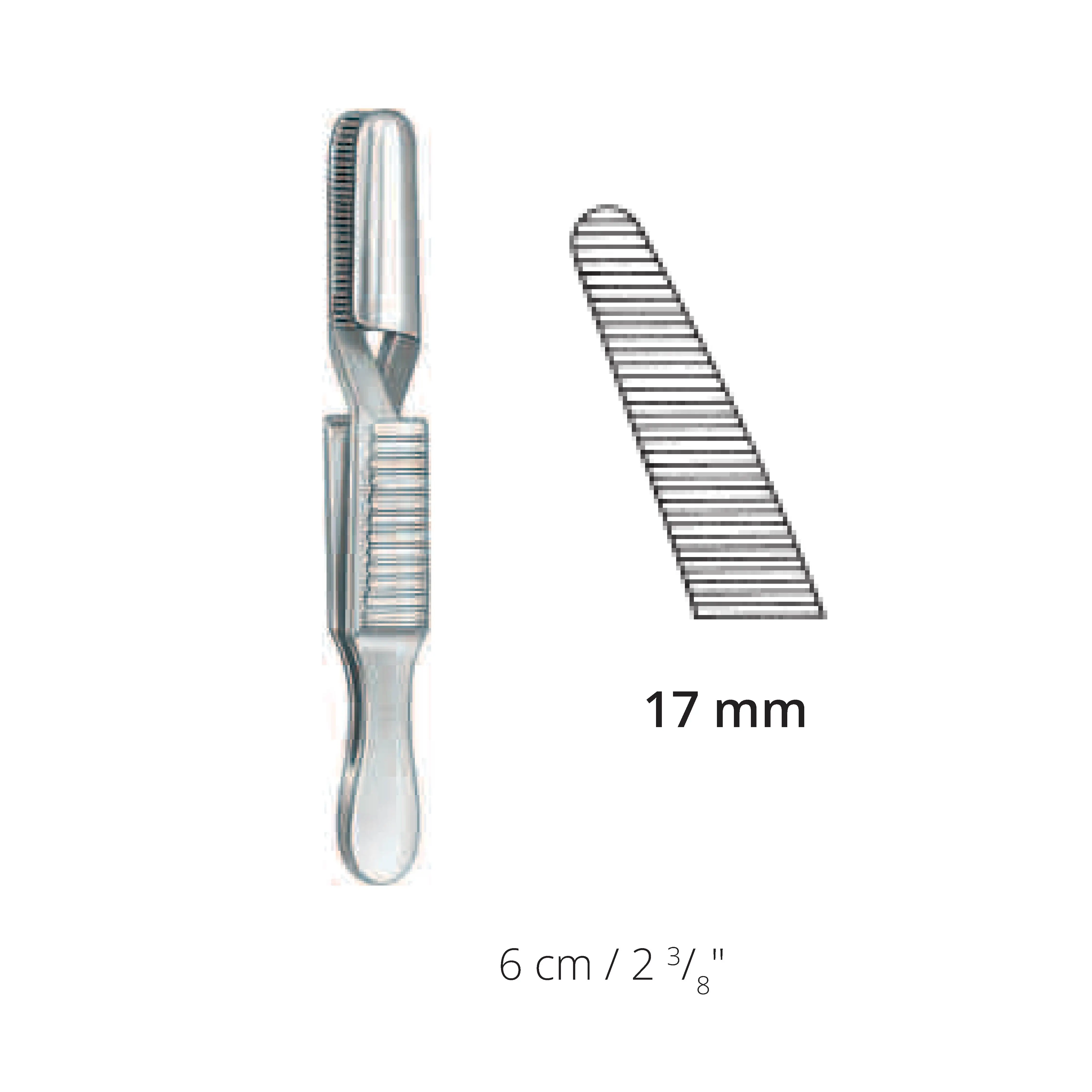 6 cm / 2.375", Jaw length 17 mm