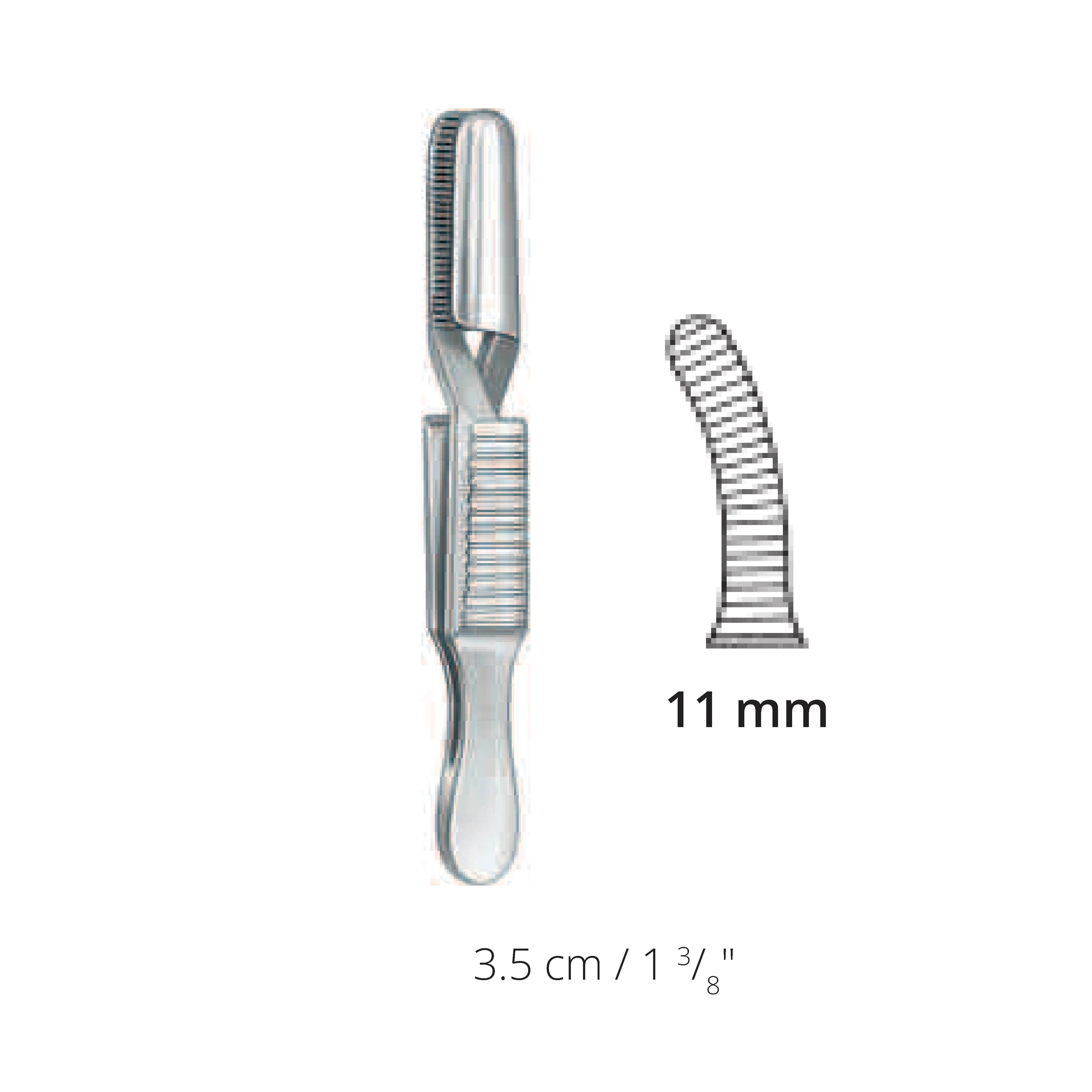 3.5 cm / 1.375", Jaw length 11 mm
