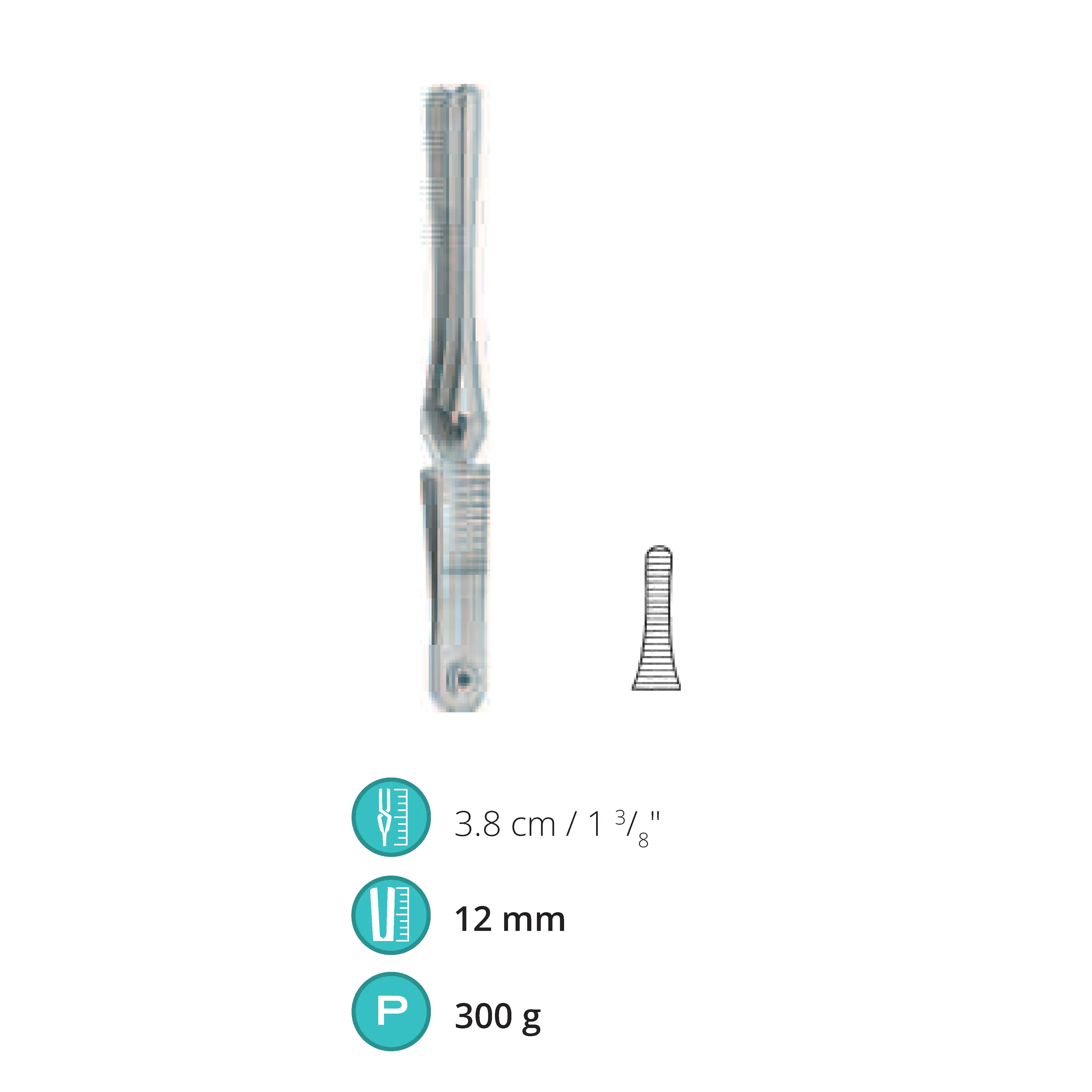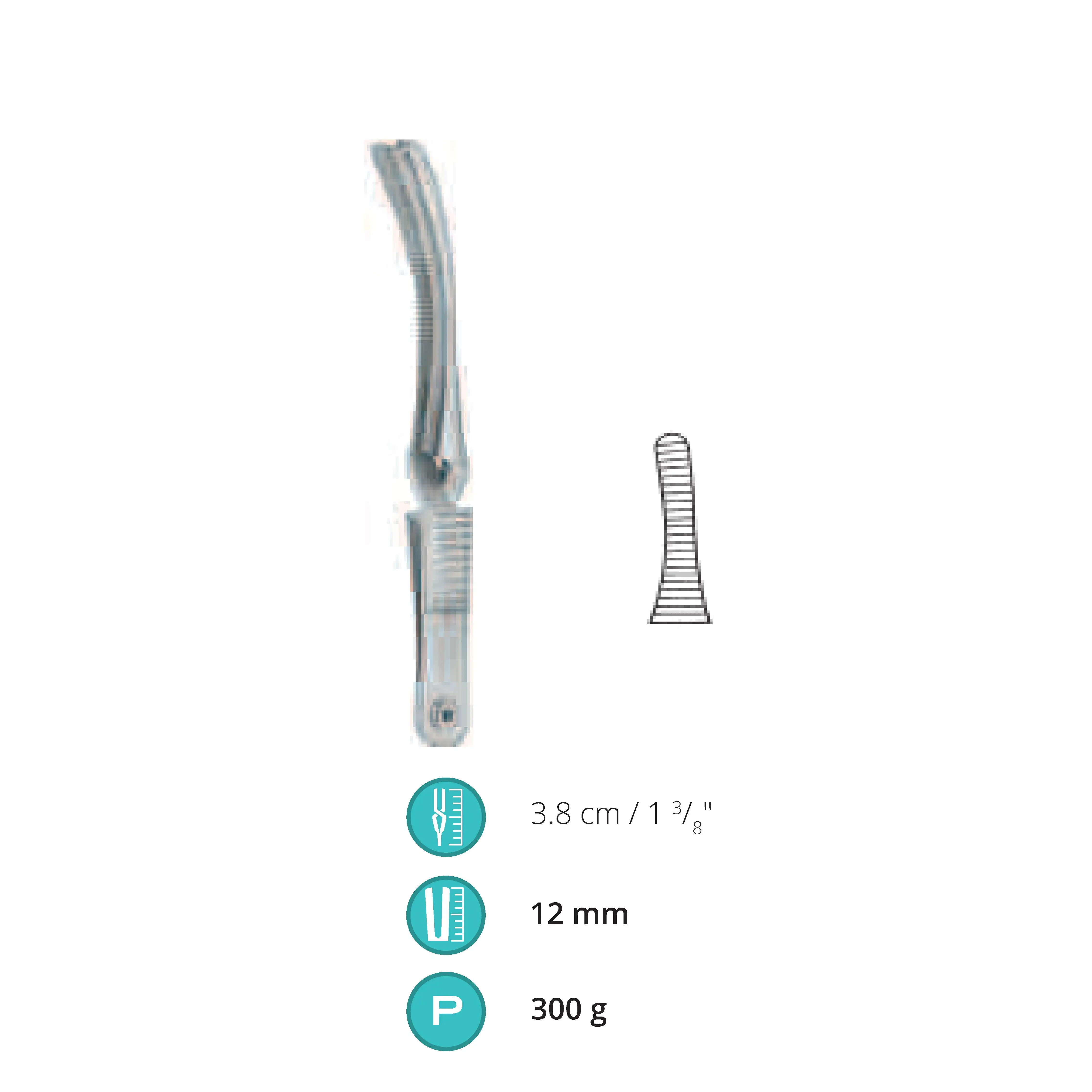3.8 cm / 1.375", Jaw length 12 mm, Pressure 300 g