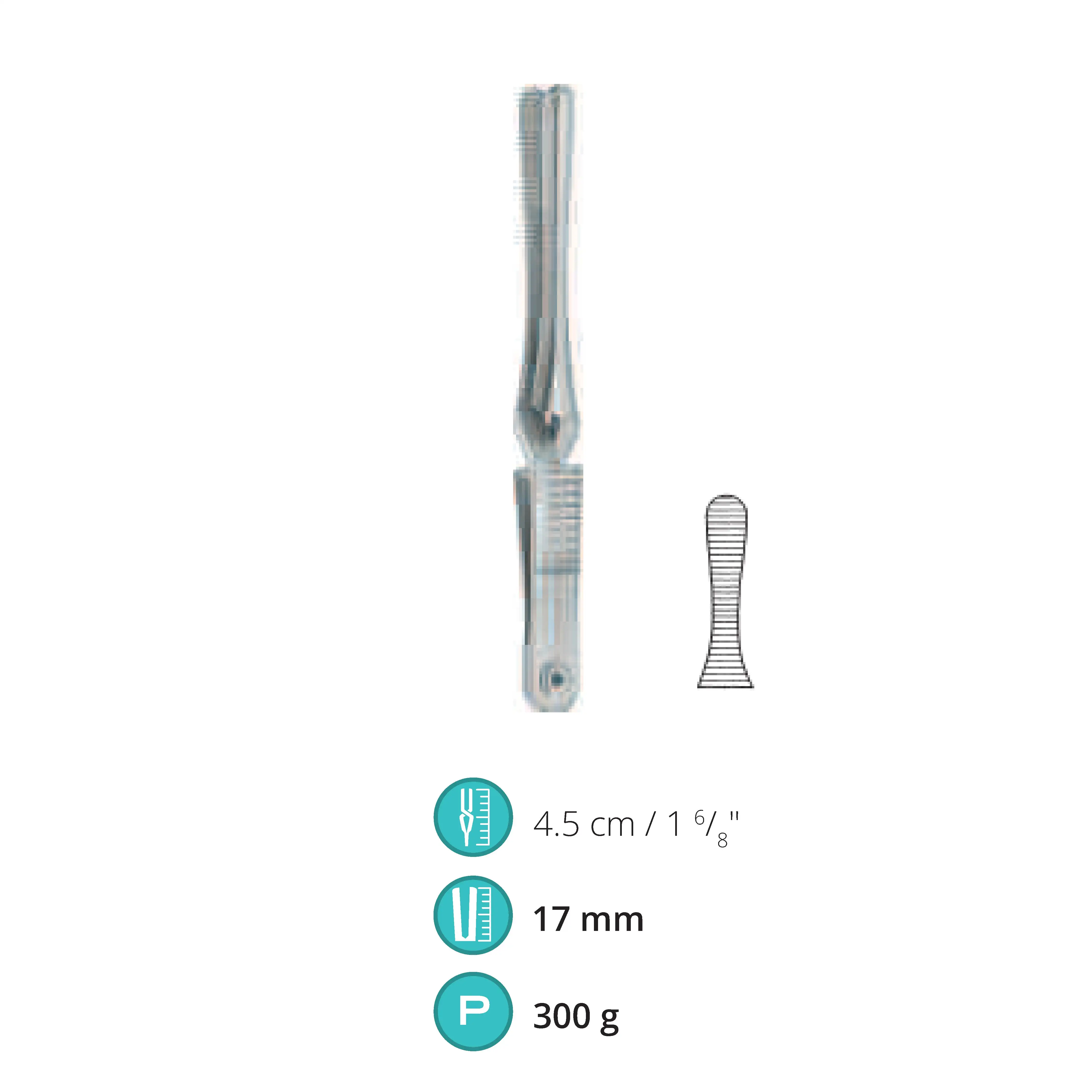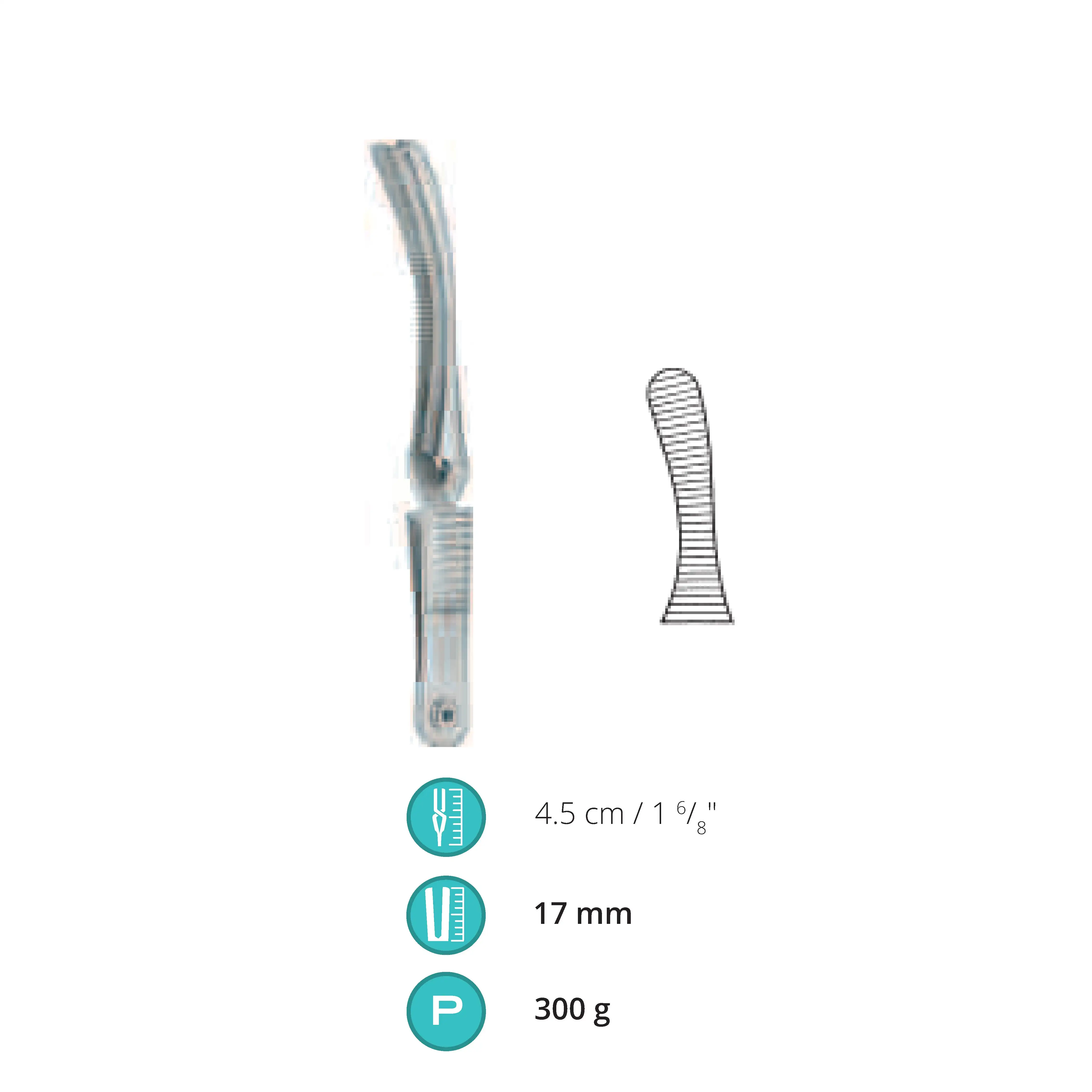 4.5 cm / 1.75", Jaw length 17 mm, Pressure 300 g