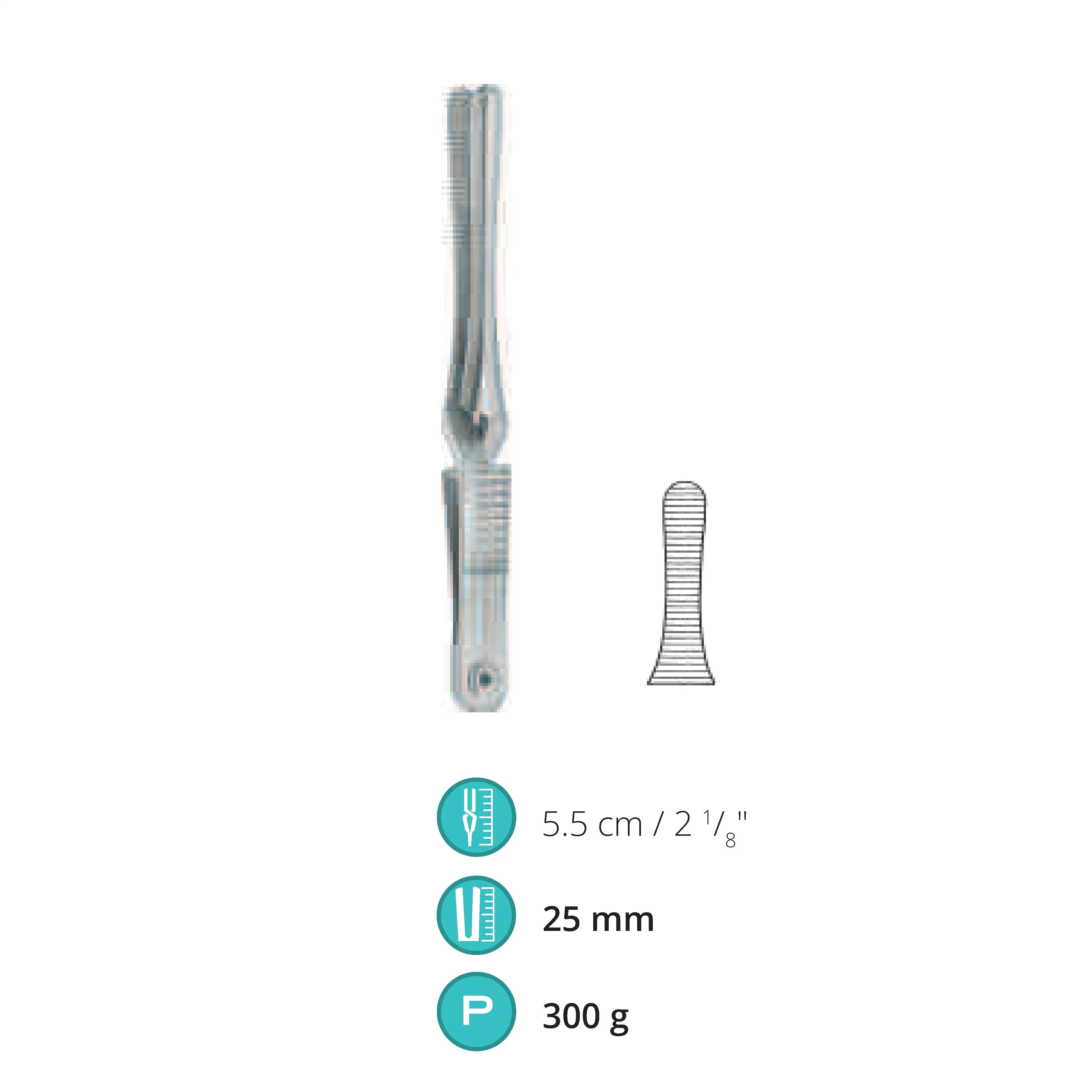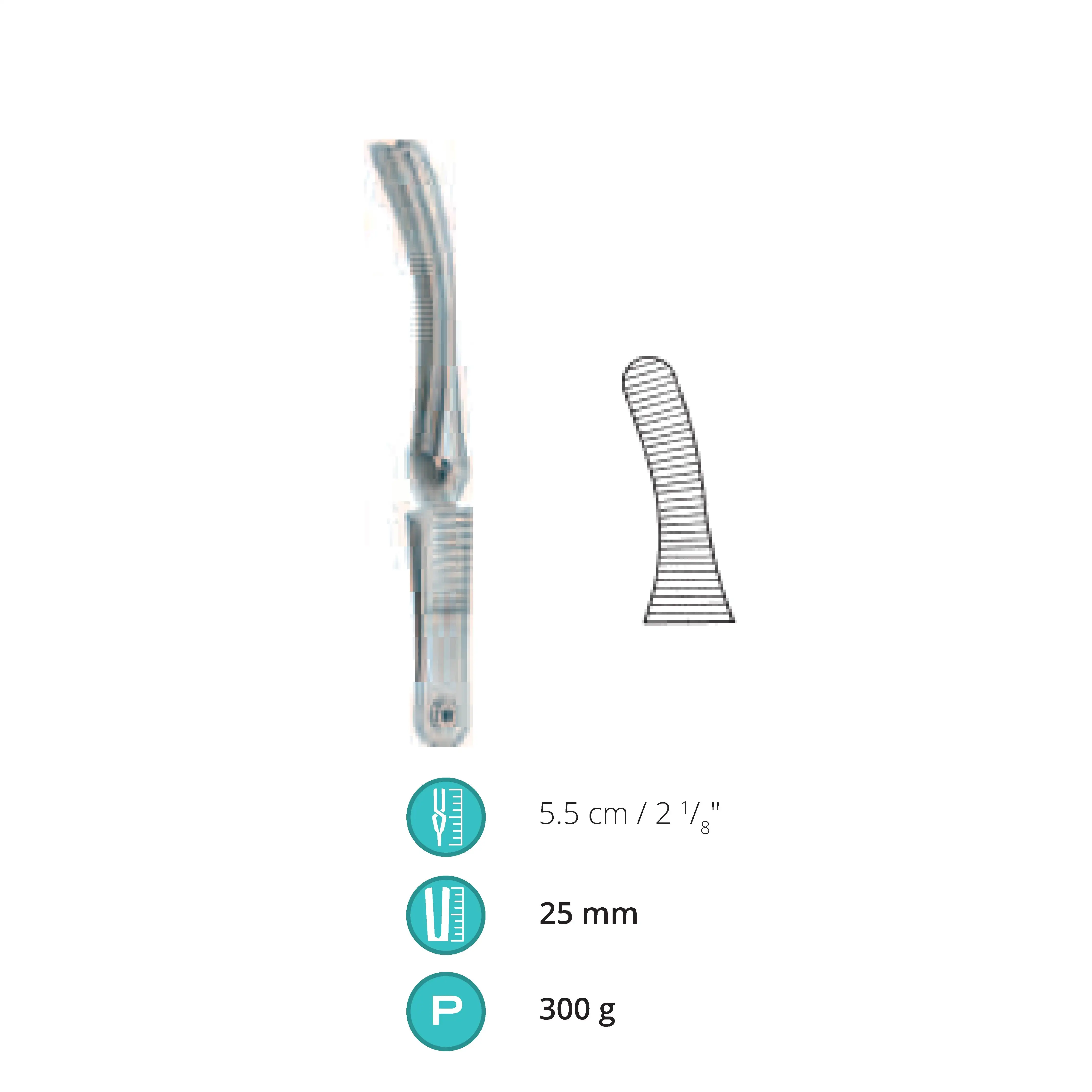5.5 cm / 2.125", Jaw length 25 mm, Pressure 300 g