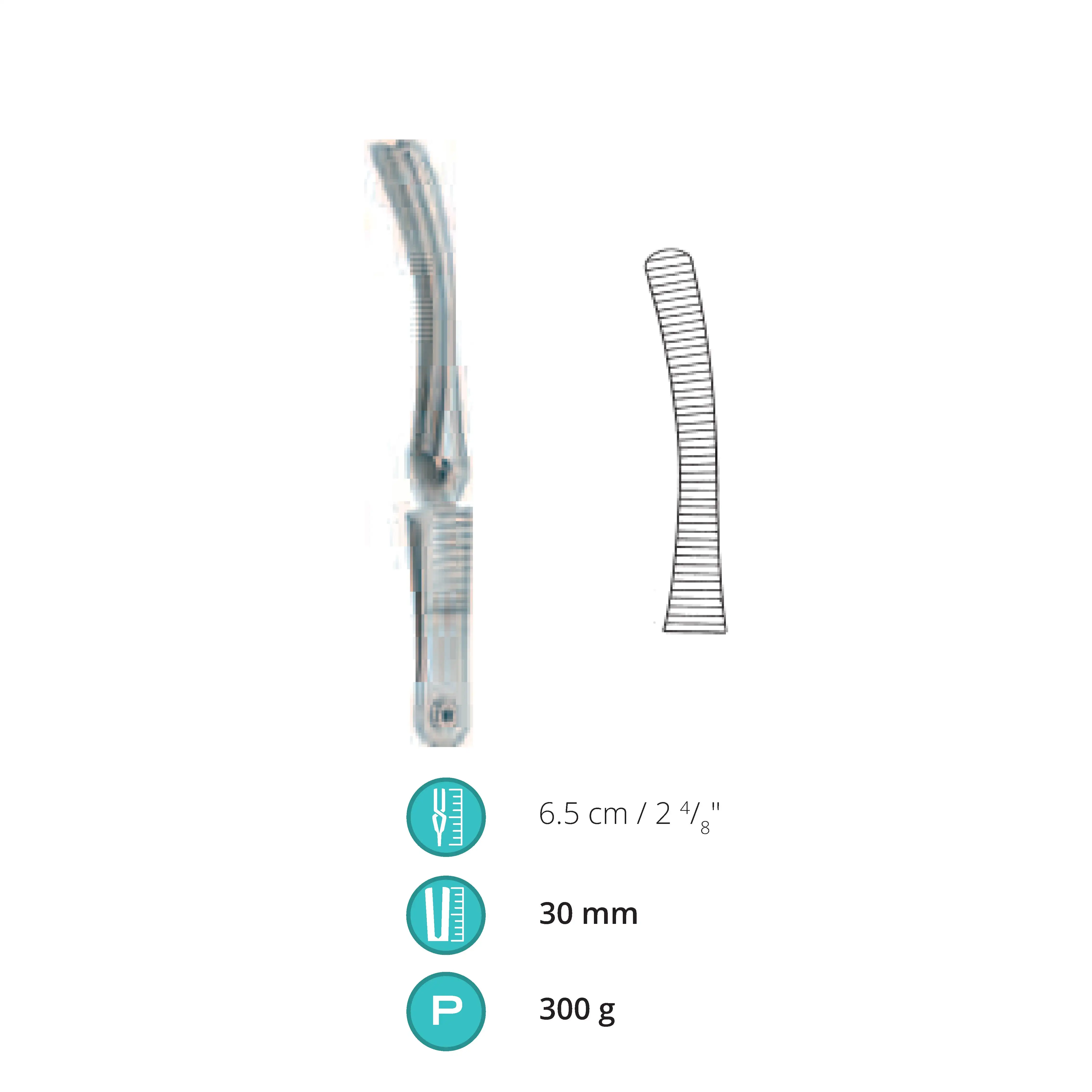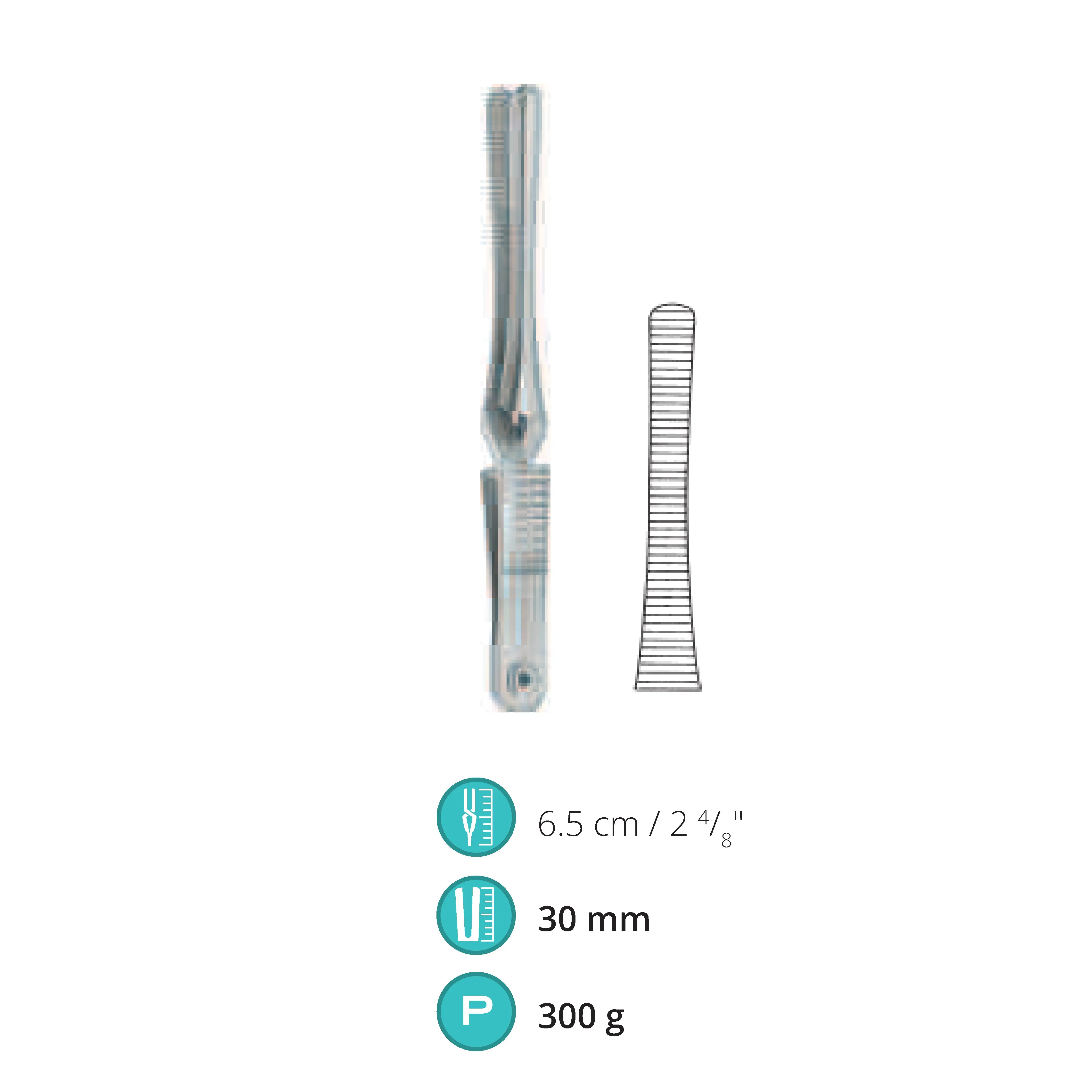 6.5 cm / 2.5", Jaw length 30 mm, Pressure 300 g