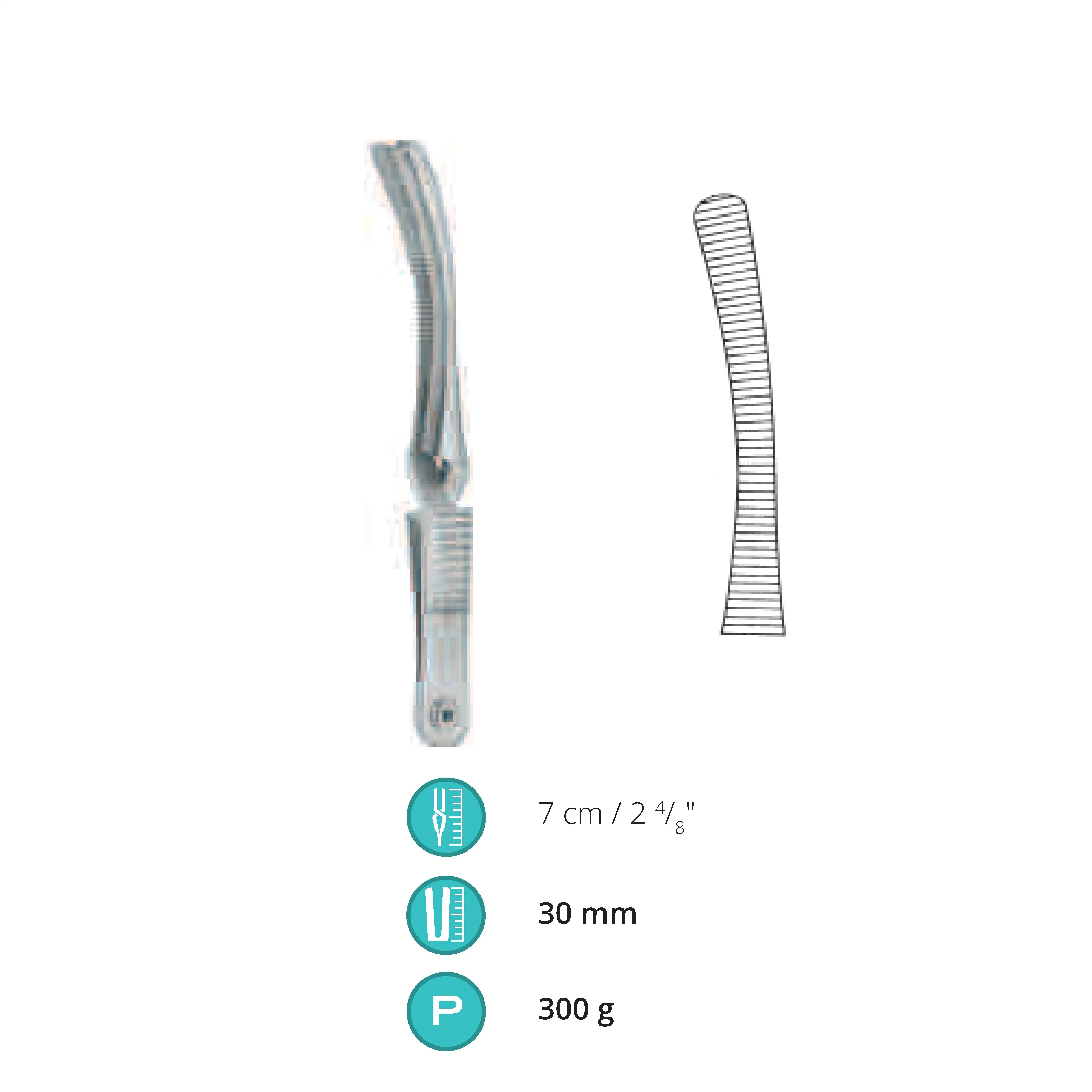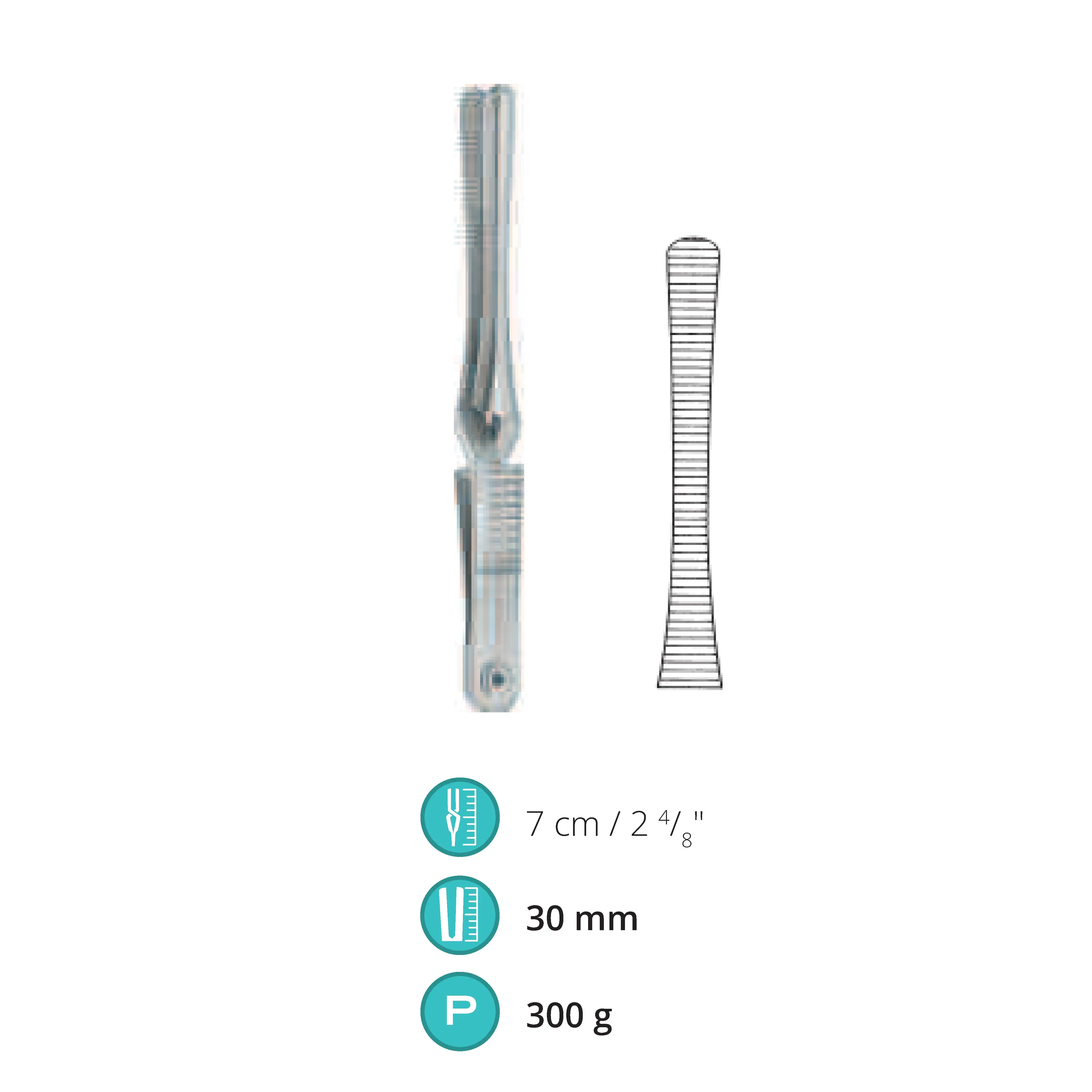 7 cm / 2.5", Jaw length 30 mm, Pressure 300 g