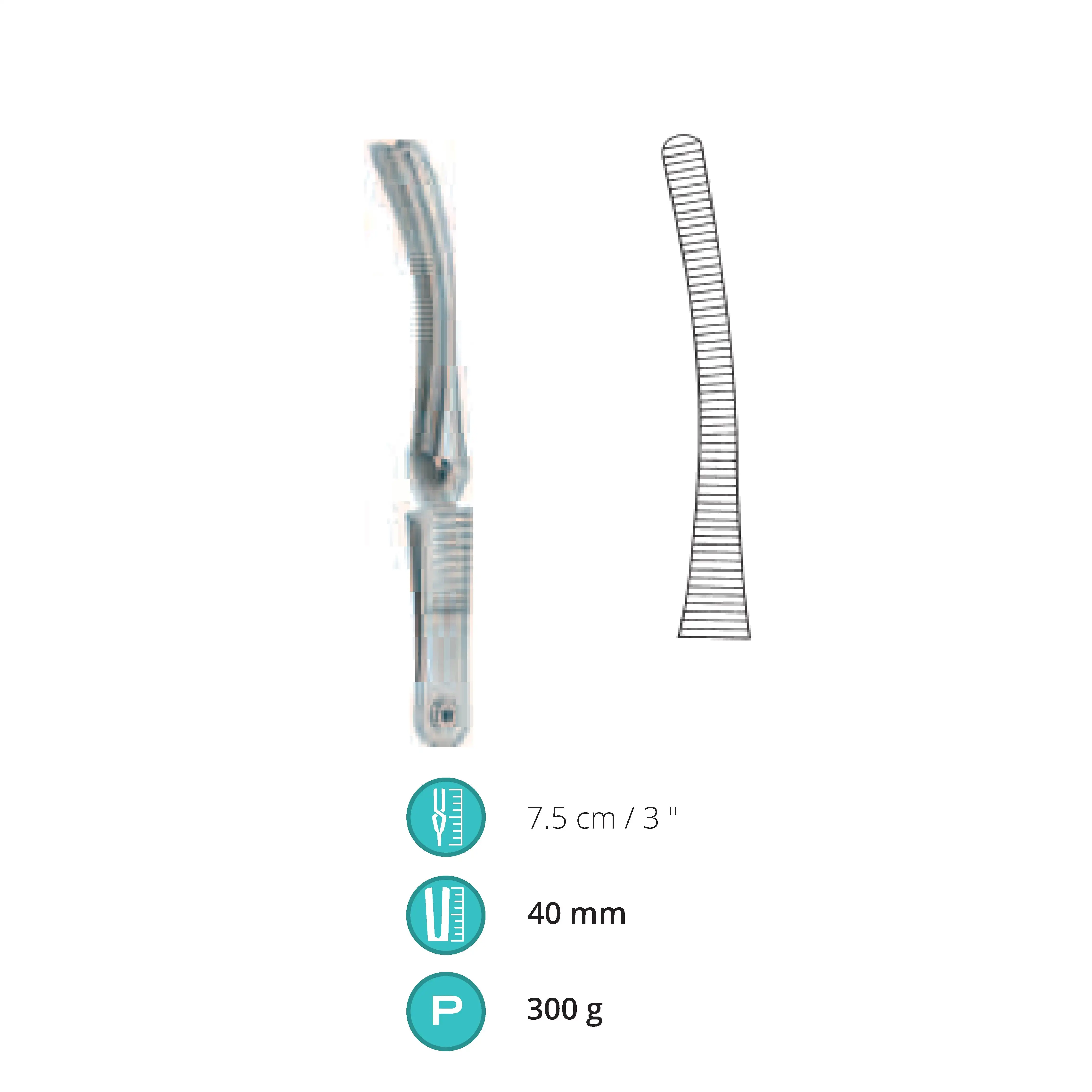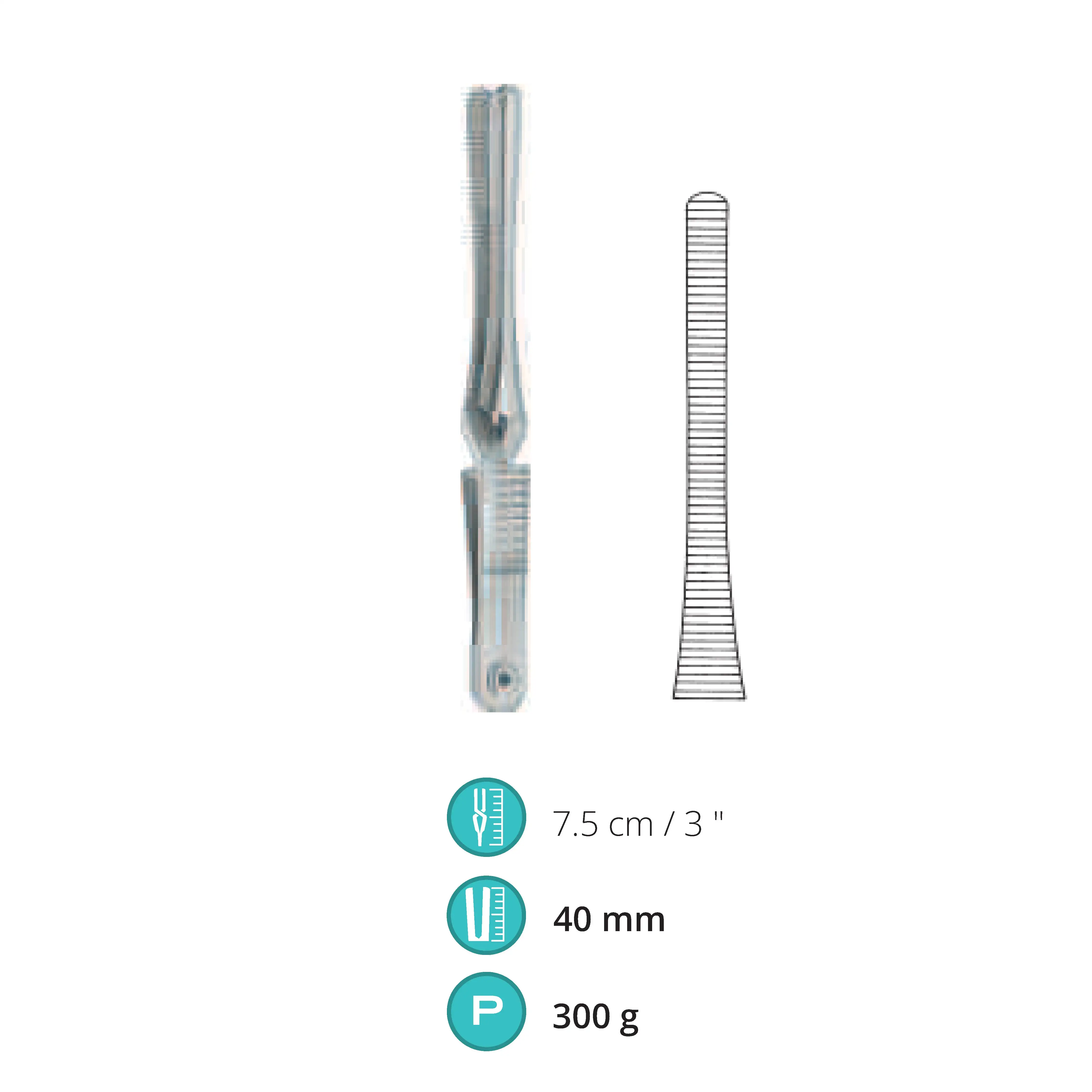 7.5 cm / 3", Jaw length 40 mm, Pressure 300 g