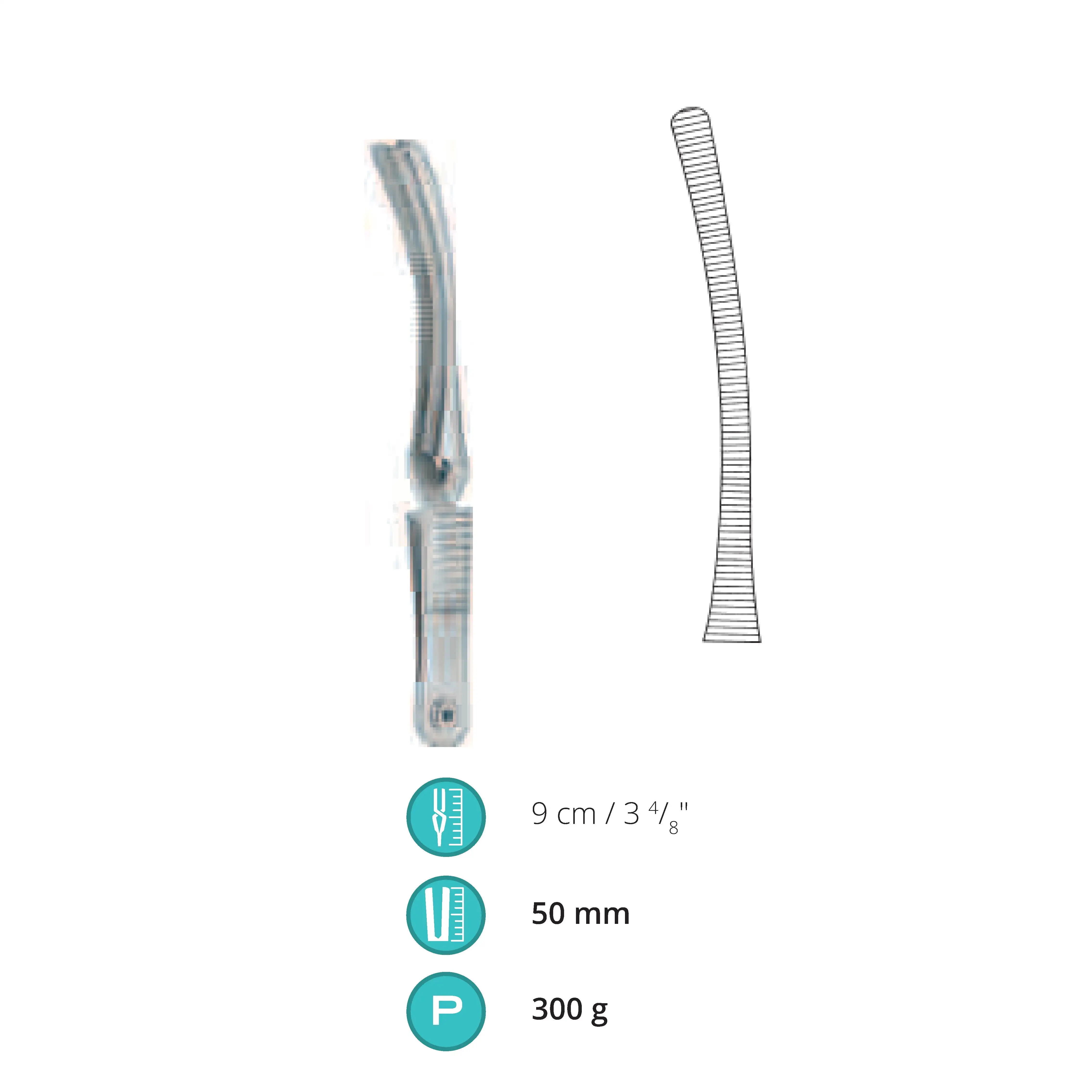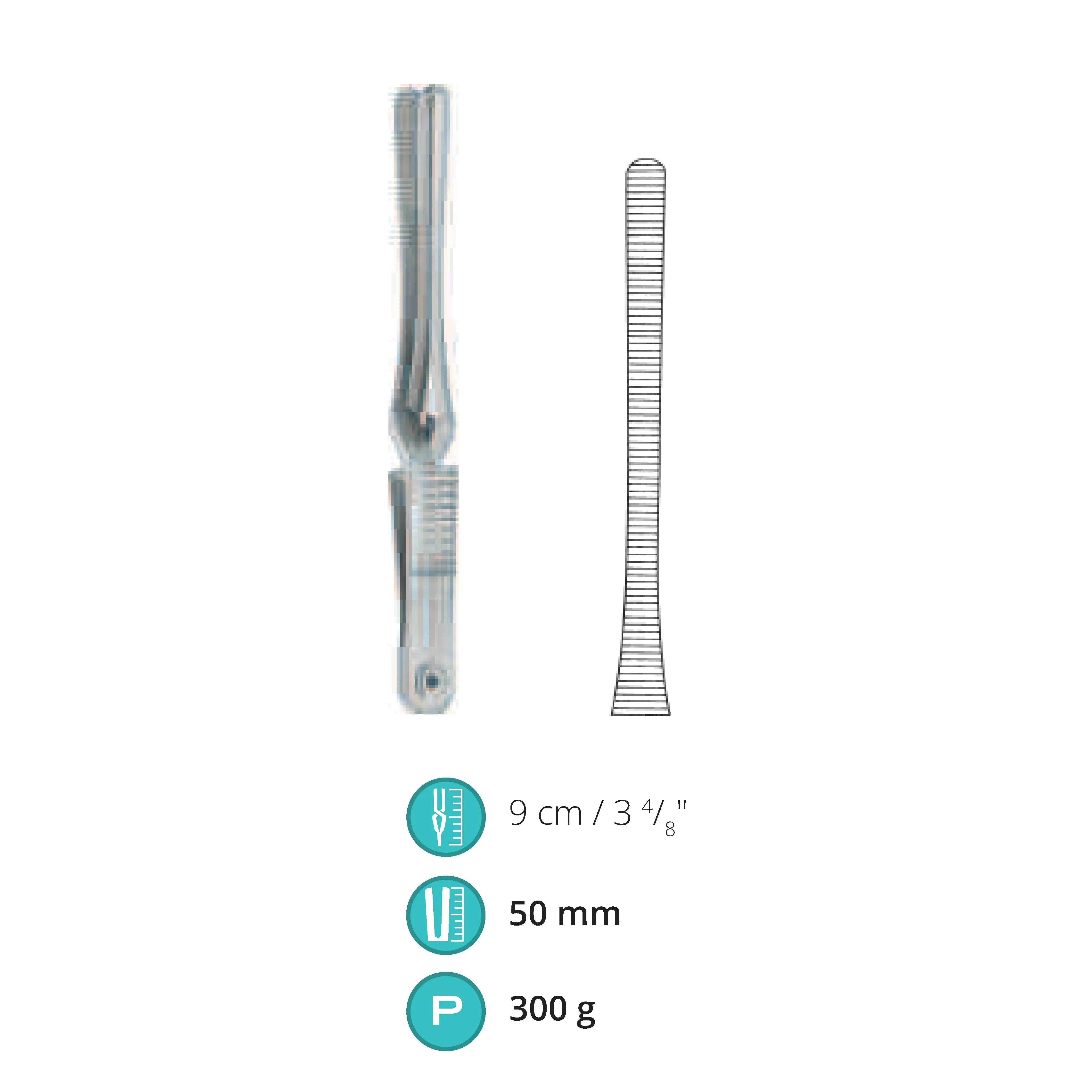 9 cm / 3.5", Jaw length 50 mm, Pressure 300 g