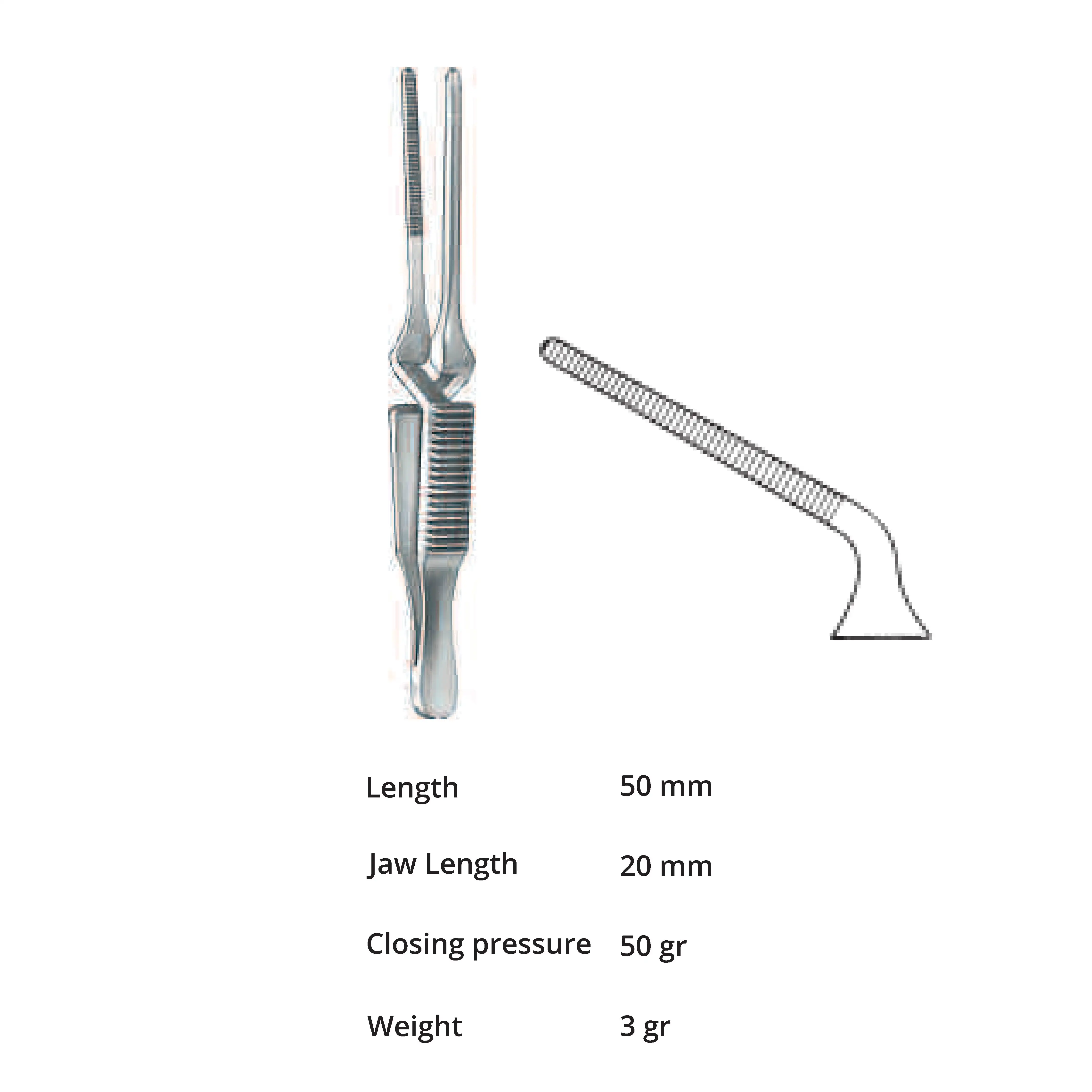 Length 50 mm, jaw length 20 mm, Pressure 50 g